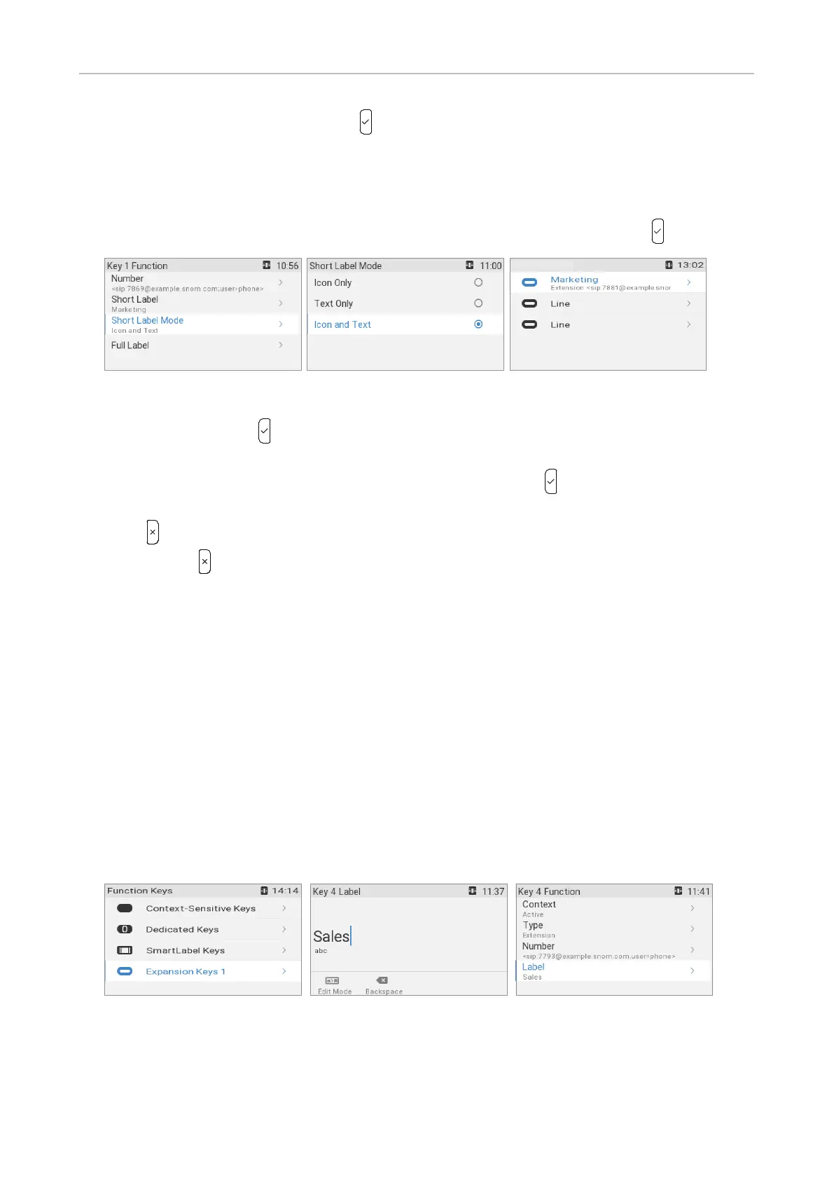 respectively, and press . The defult is icon nd text; you cn lso select text only - see "Short/