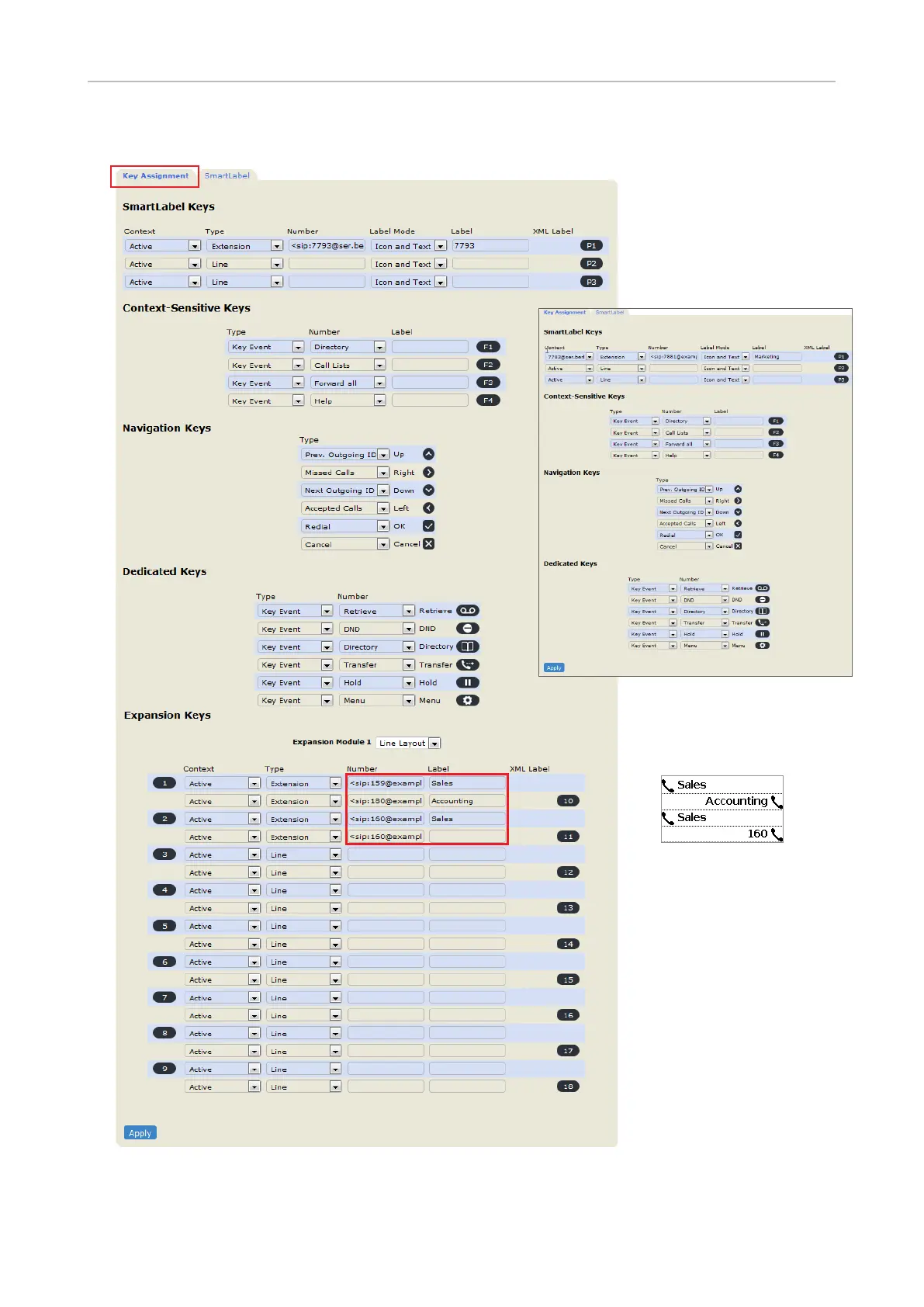Fig. 3 - Key assignment page with one connected D7 Expansion Module. Apply button moves to bottom of page.