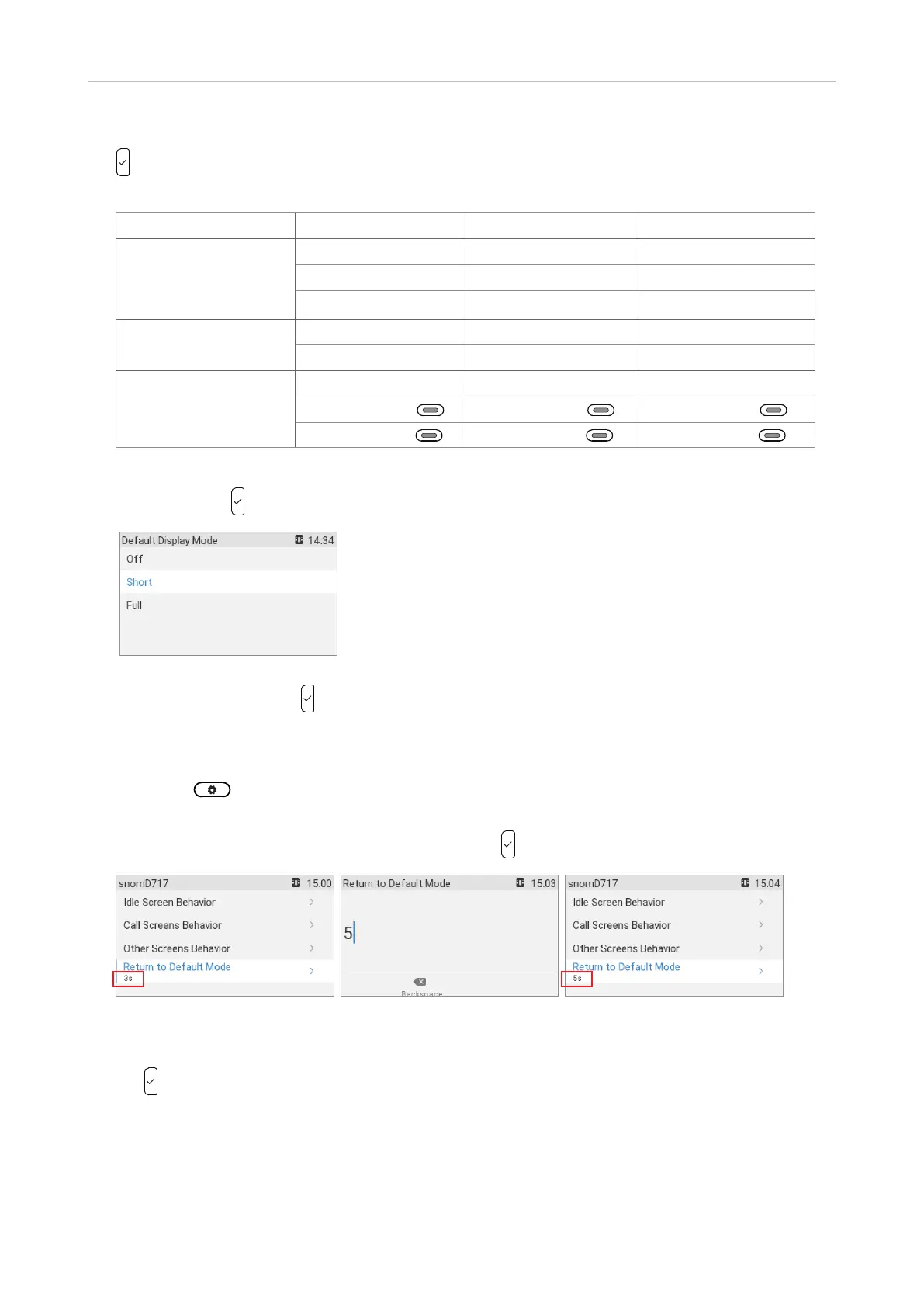 2. Select Return to default mode (Fig. 5) and press . The preset default is 3 seconds.