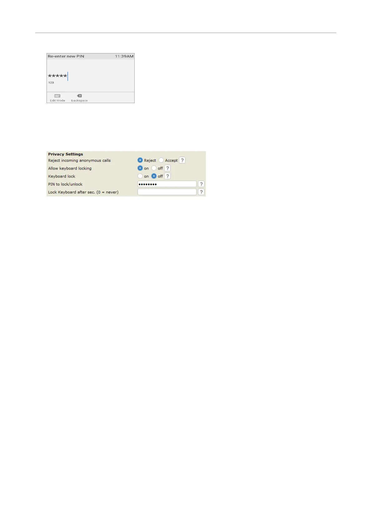 Note: The textfield always contains 8 dots, whether a PIN has been set or not and