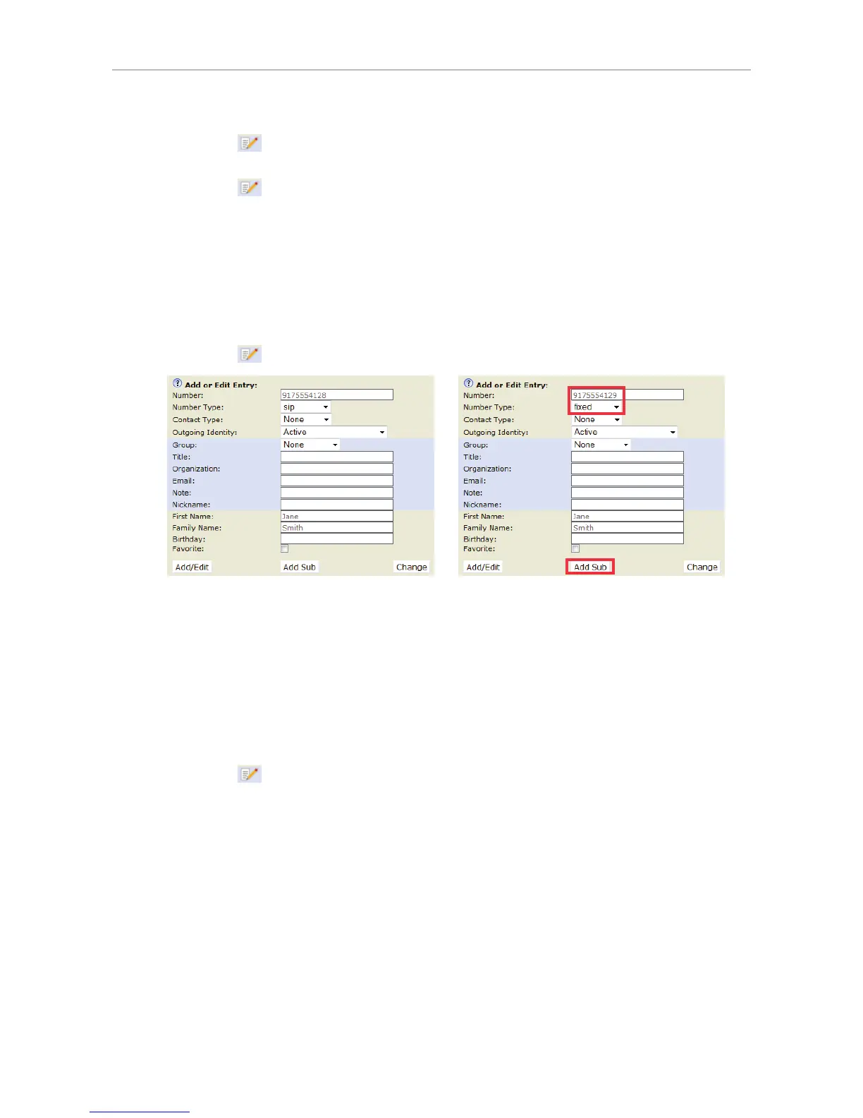 • Adding additional phone number(s) (subentries) to an entry