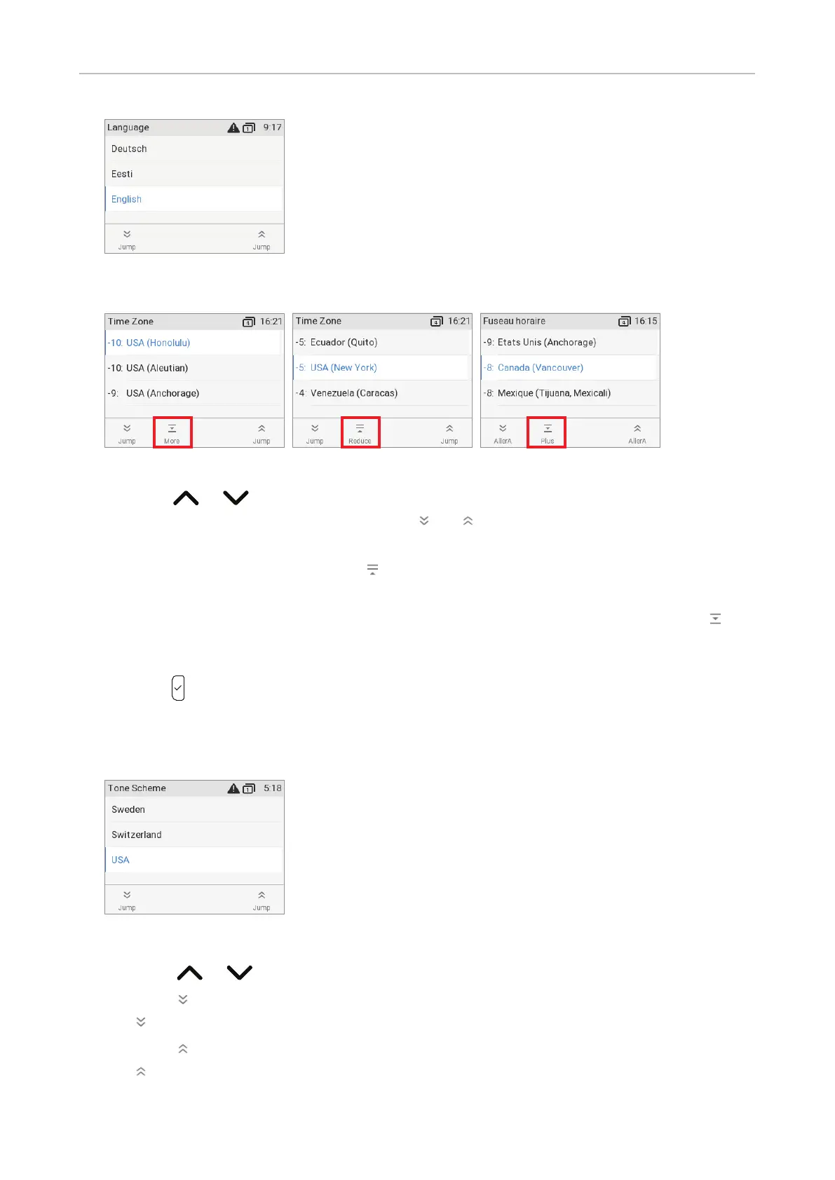 ◦ Press or to move up or down the list one item at a time.