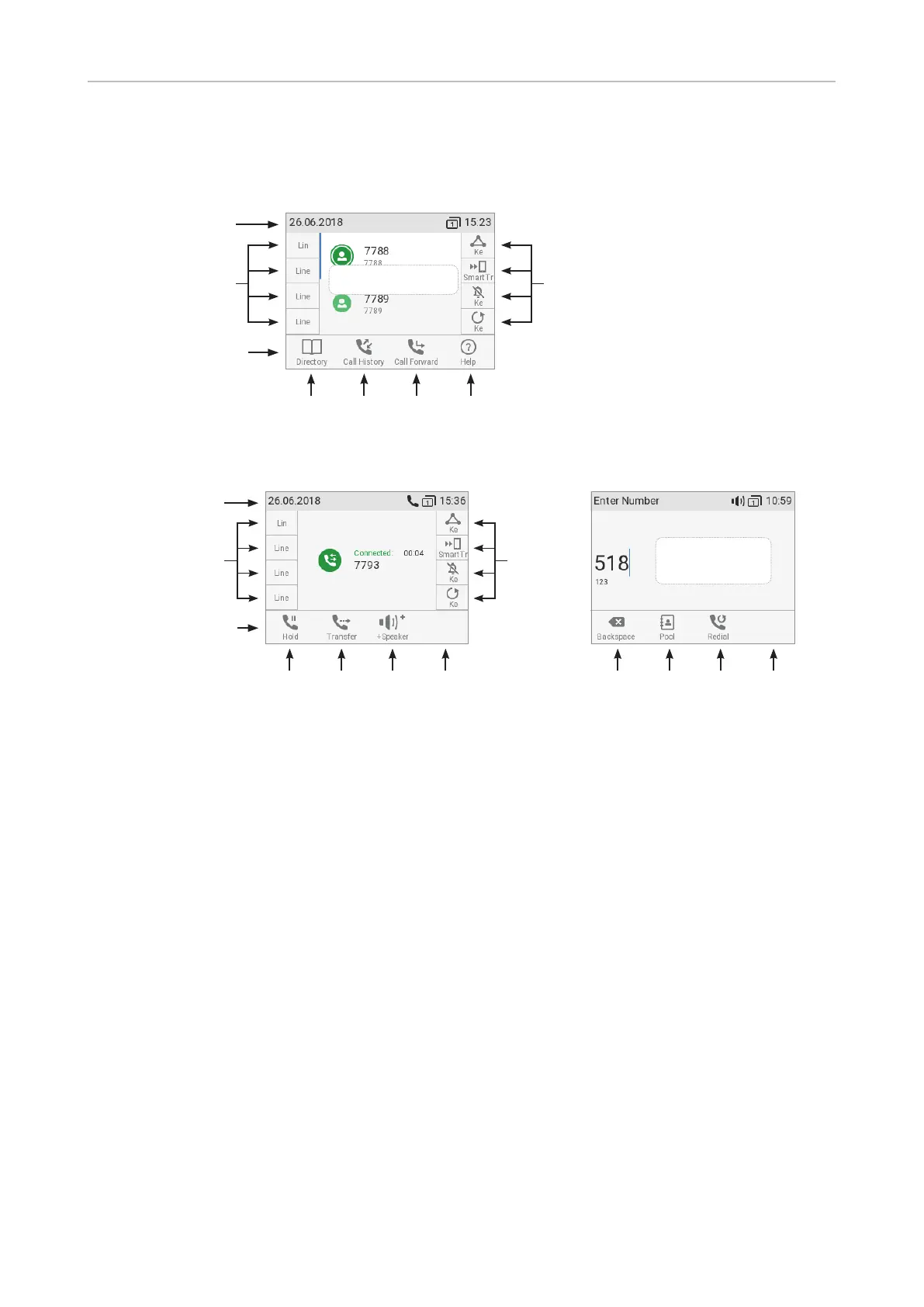 ◦ The texts "Forward All:", "Forward when busy:", or "Forward after timeout:" and the phone