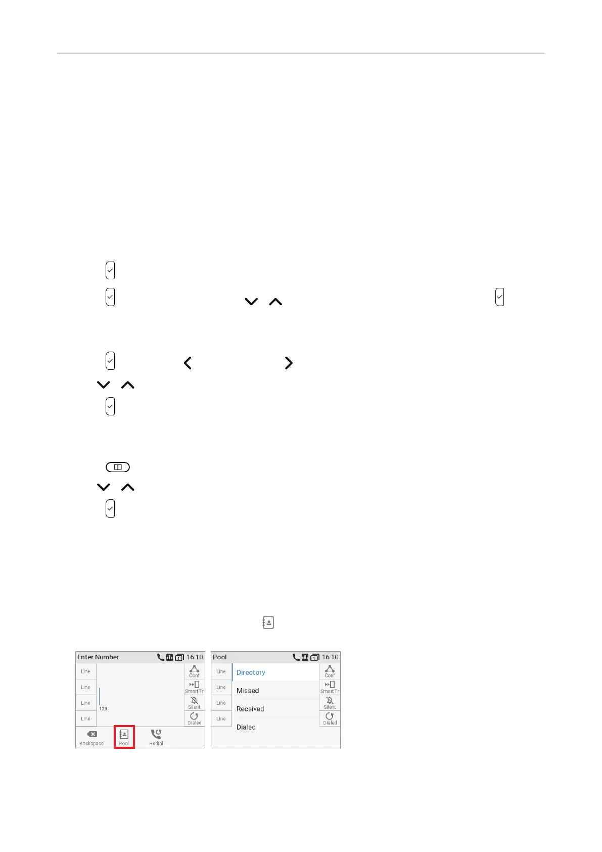 a. Lift the handset o the cradle or press the speakerphone key to open the dialing screen