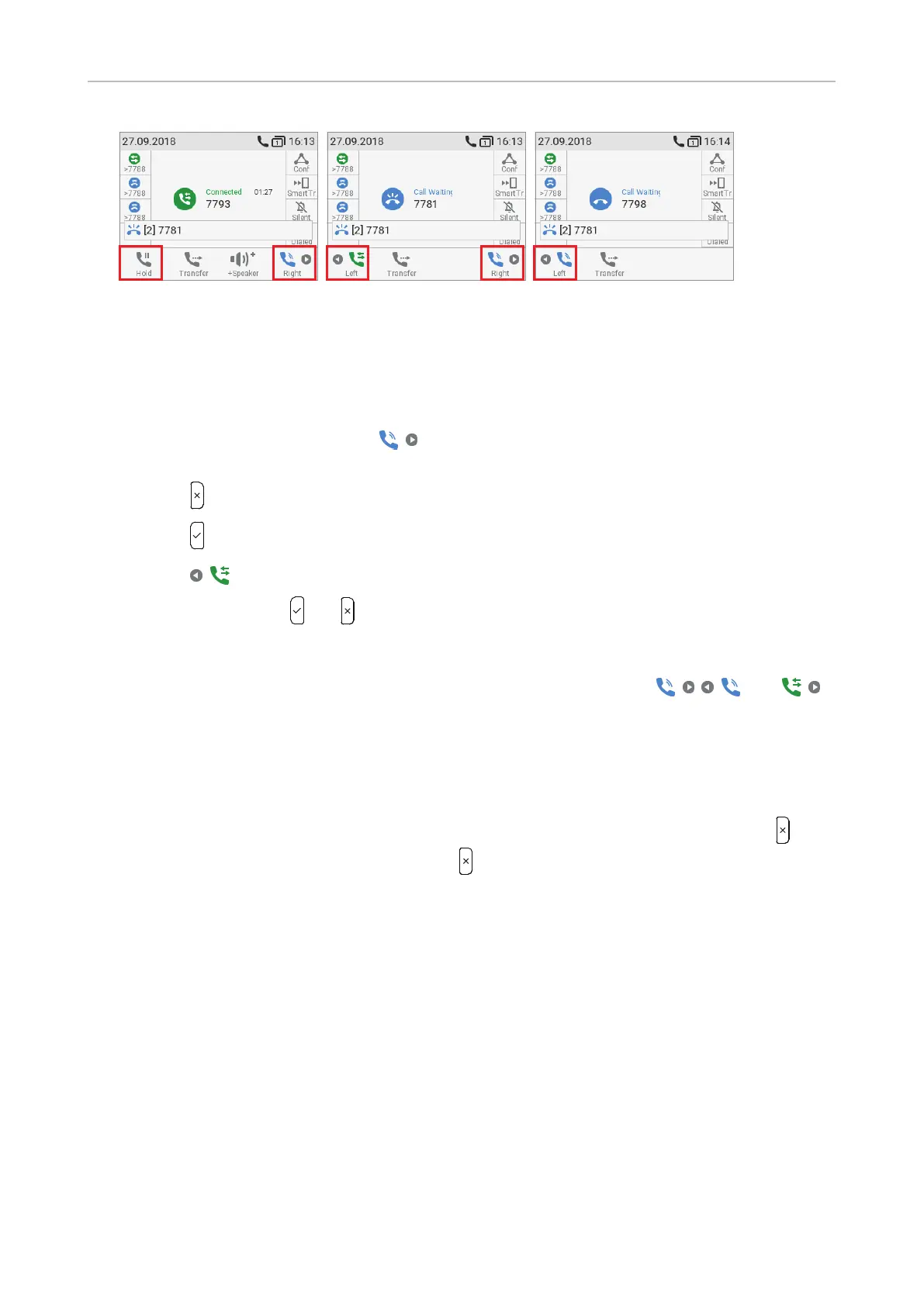 ◦ If there is more than one call waiting (Fig. 5, 6, and 7), press the keys