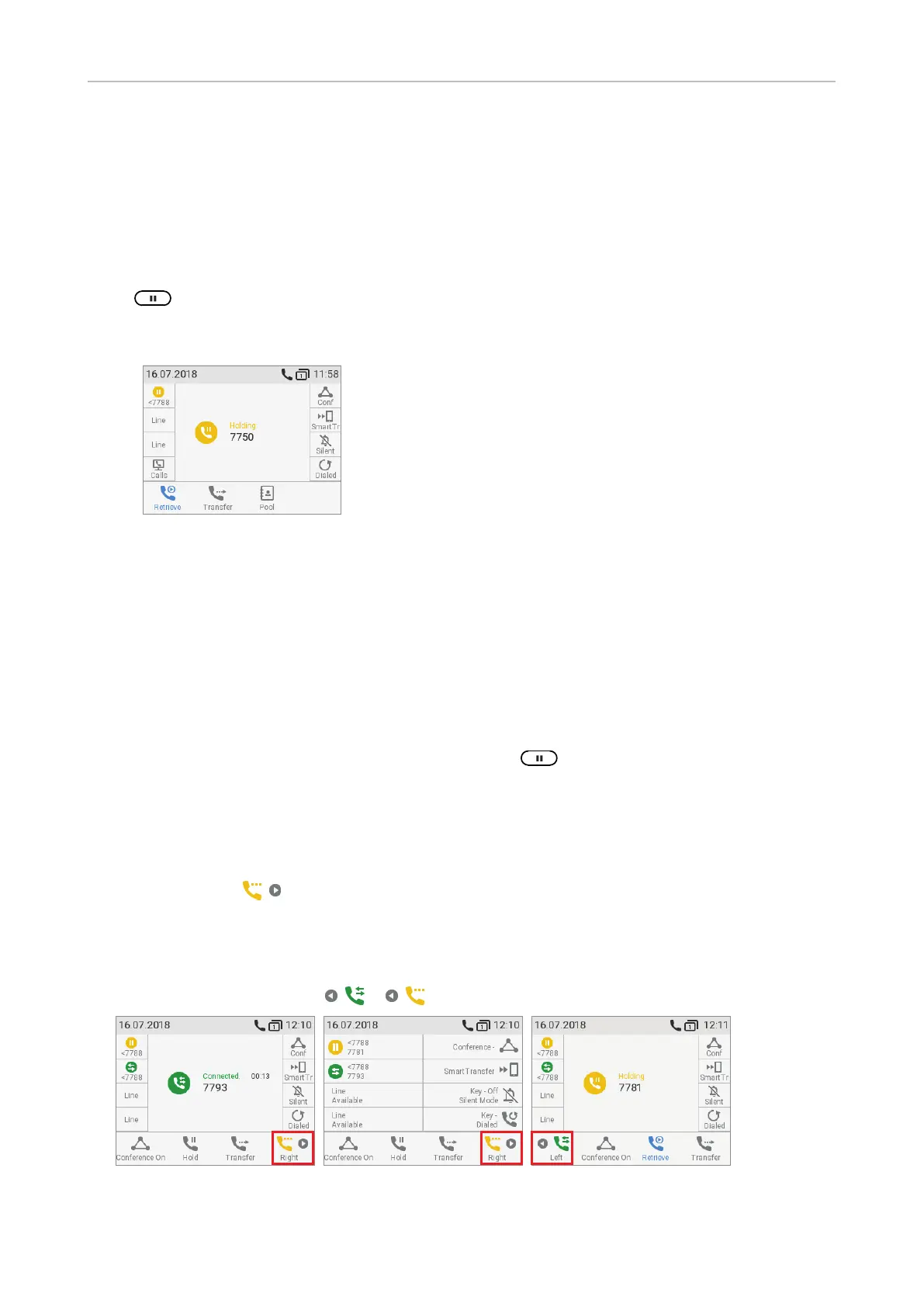 to put the ongoing call on hold. Held calls are indicated threefold: