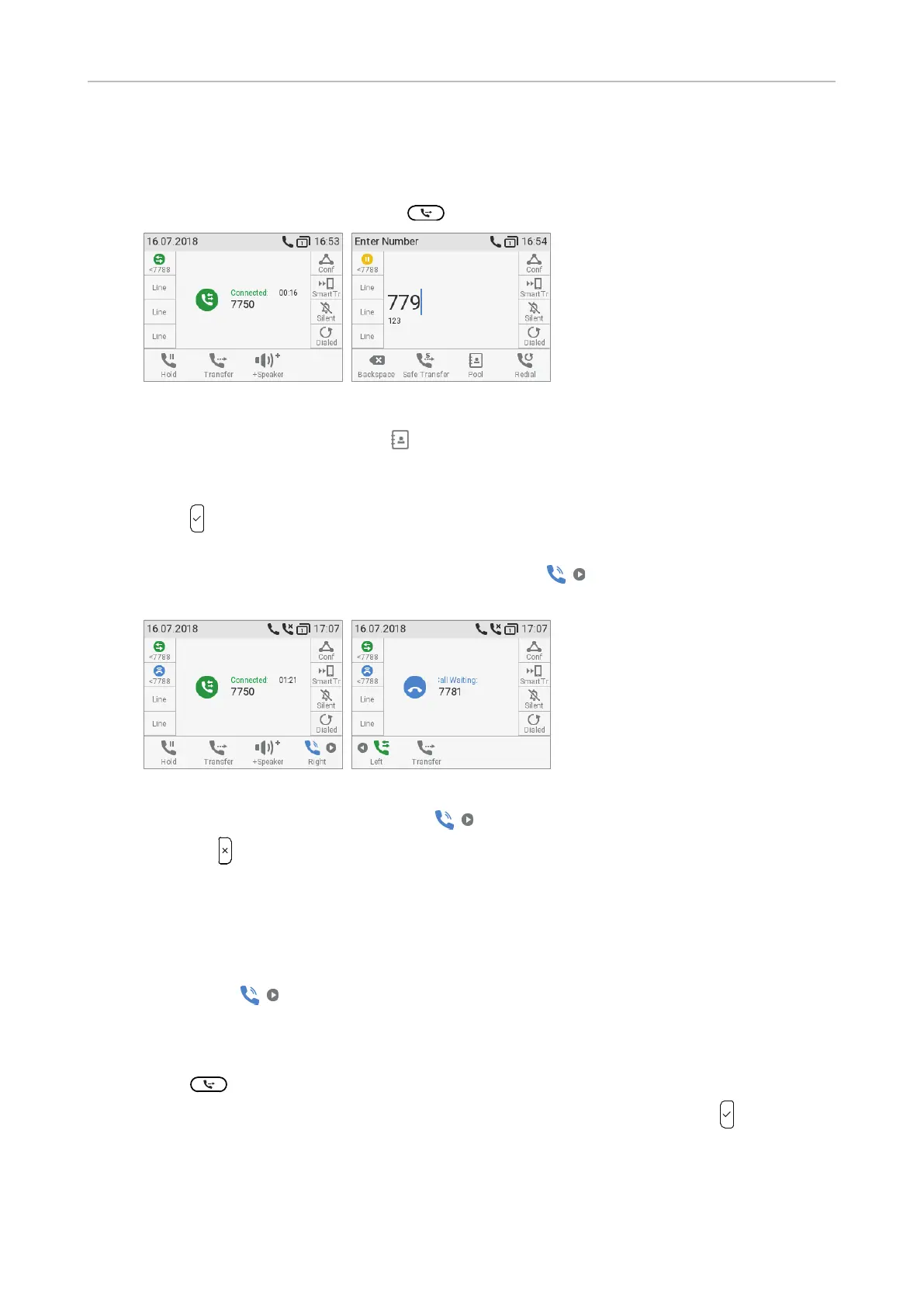 Note: Your active call will remain active while you are transferring the ringing