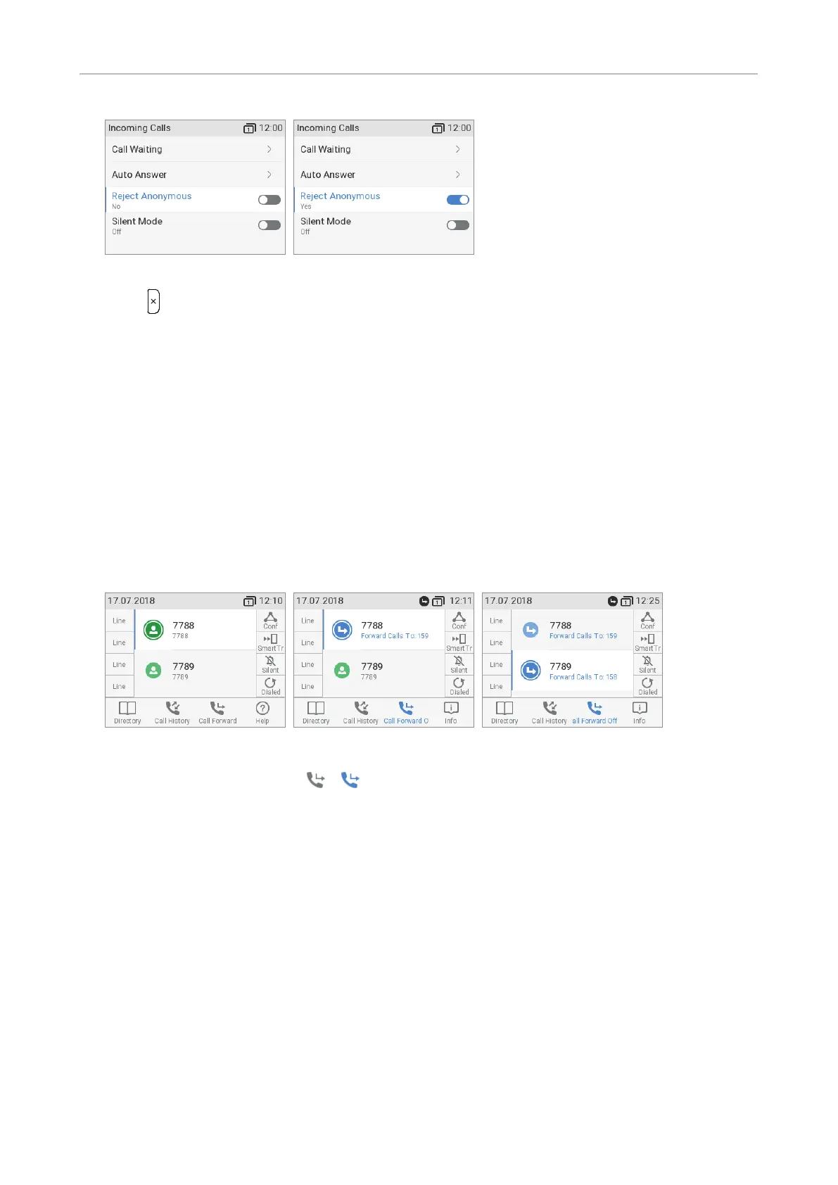 turn forwarding of all calls for the current outgoing identity on and o, respectively, by pressing the