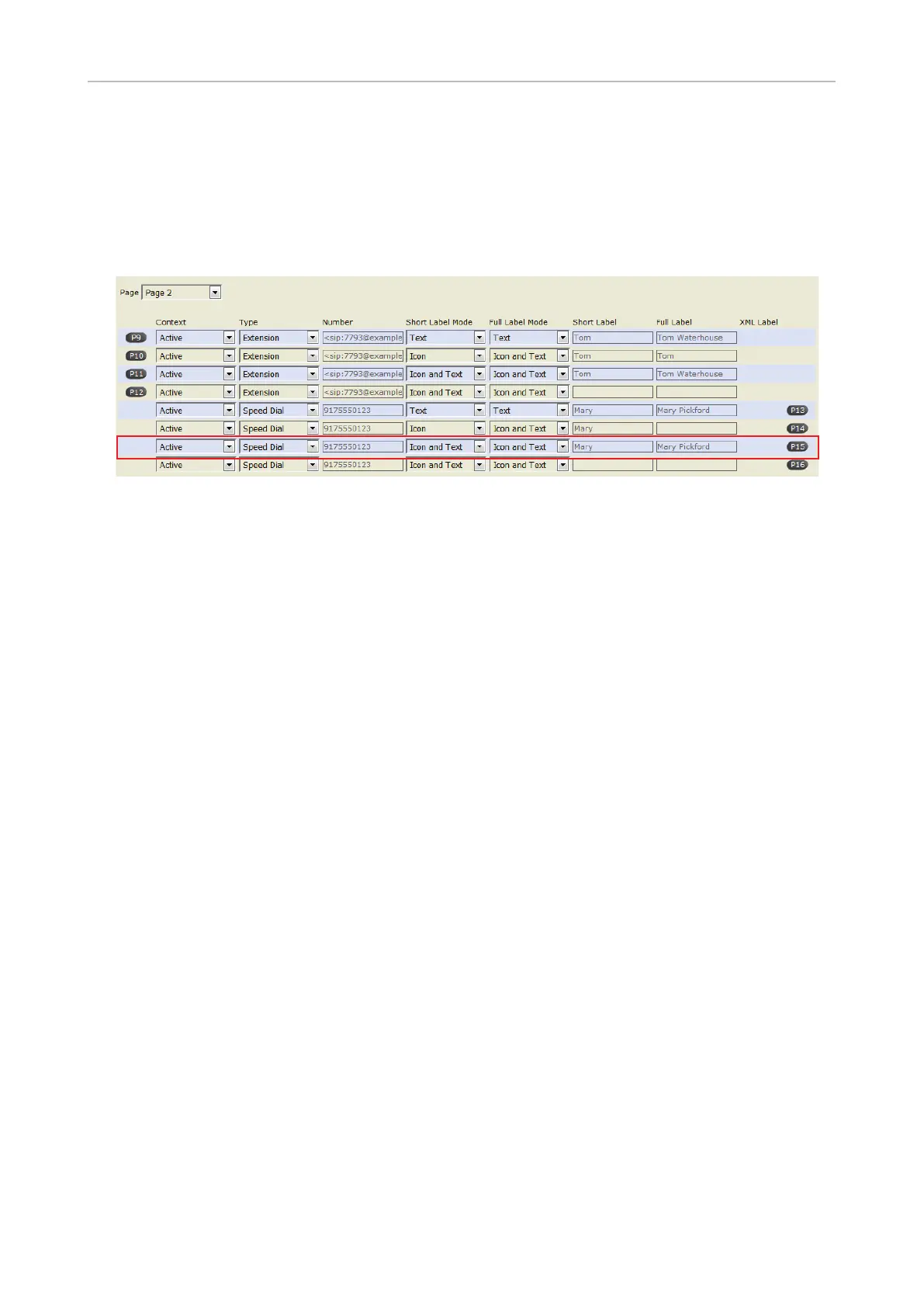 expansion module. In our example, key P15 on page 2 of the function keys will be used to speed dial