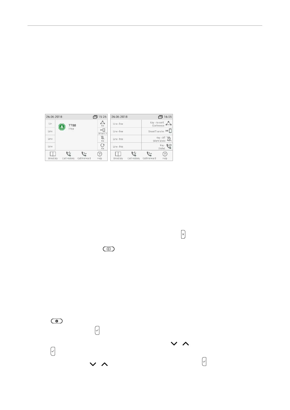 screen, the directory key to access the phonebook, etc.