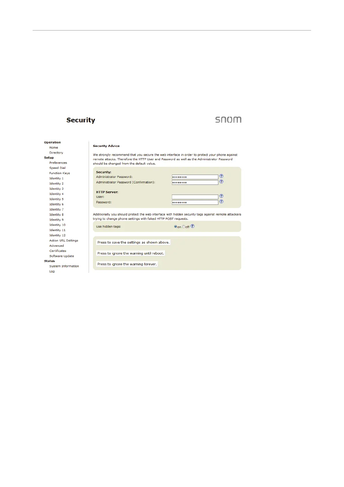 If you do not wish to set an HTTP password, you can turn o the reminder on the phone’s display until