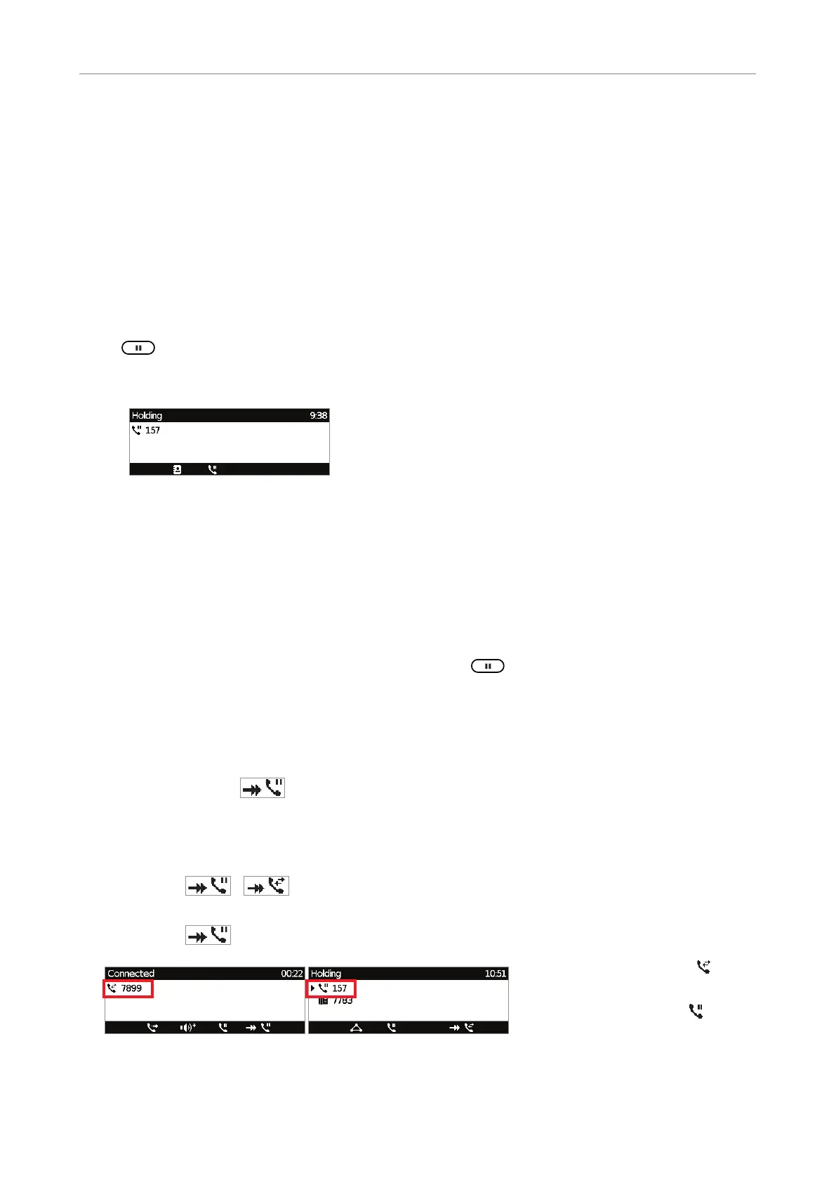 to put the ongoing call on hold. Held calls are indicated threefold:
