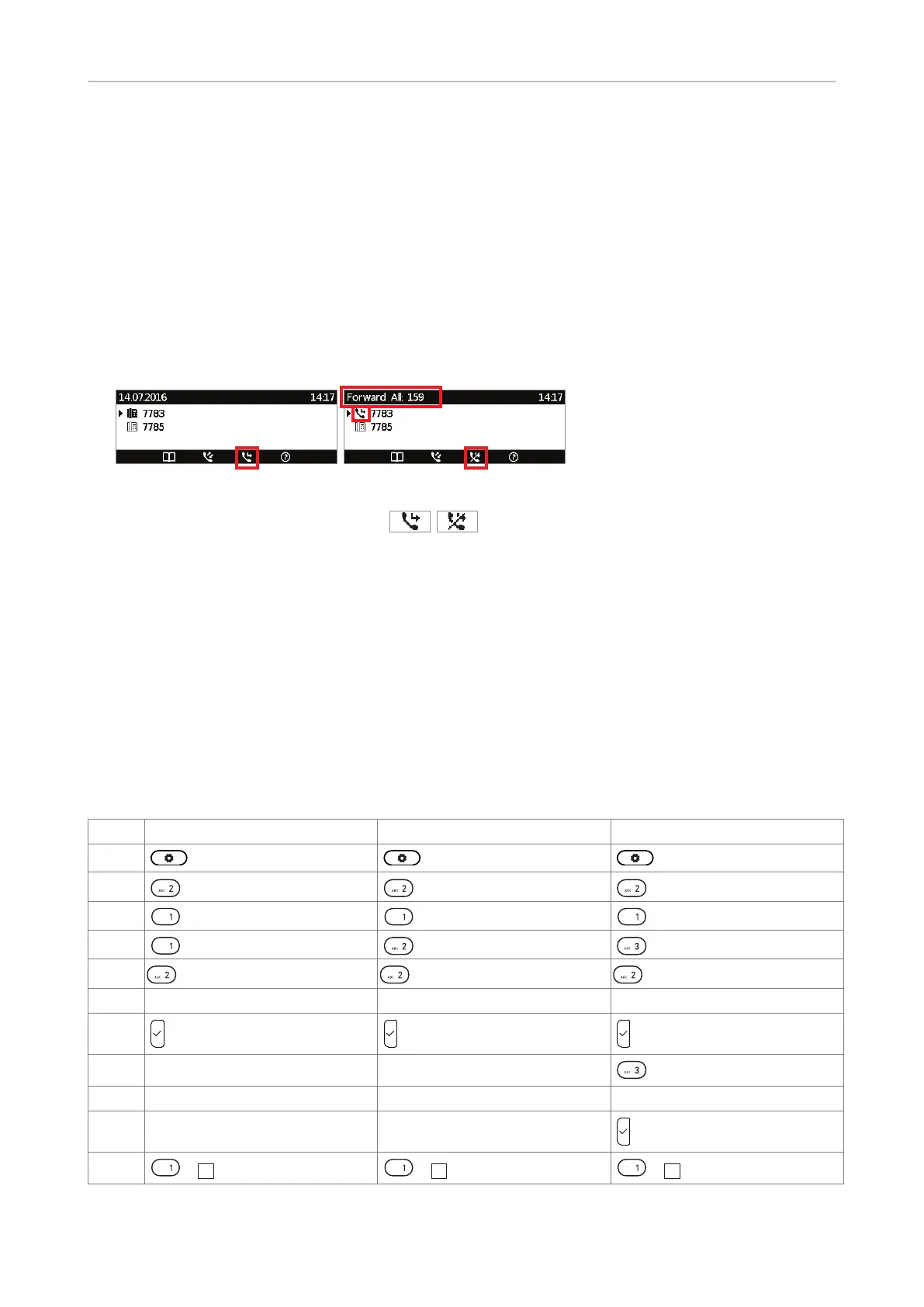 used to turn forwarding of all calls on and o, respectively, by pressing the function key underneath
