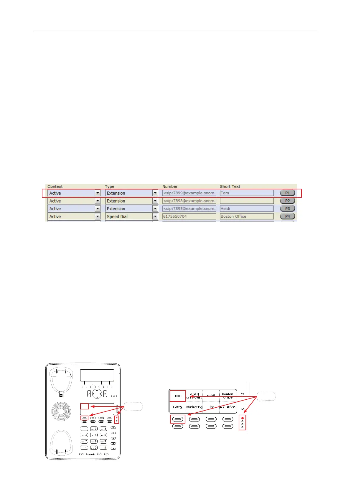 function keys with LEDs. In our example we are monitoring extension 7899 on key P1.