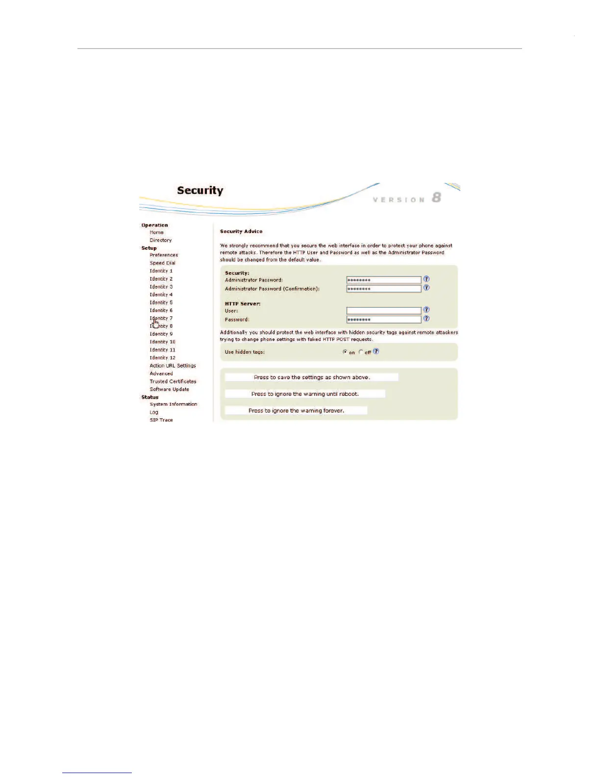If you do not wish to set an HTTP password, you can turn off the reminder on the phone’s display until