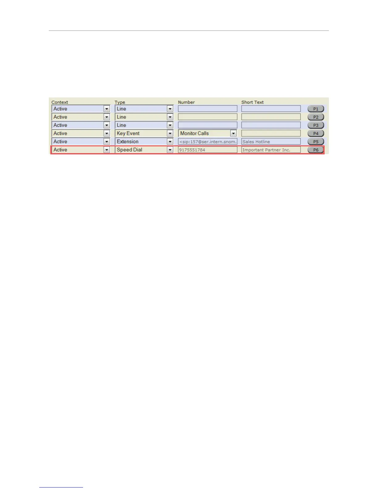 3. Under "Type" of P6, select "Speed Dial" from the drop-down list.