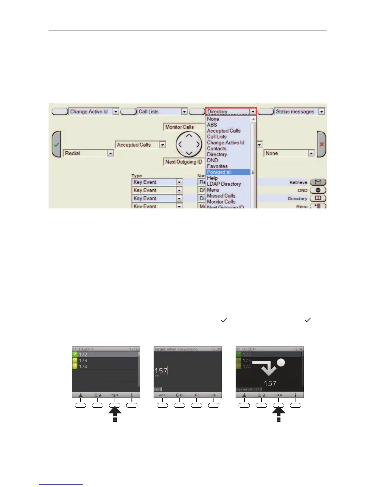 The functionality "Forward all" redirects all incoming calls to another phone or a mailbox. It is possible