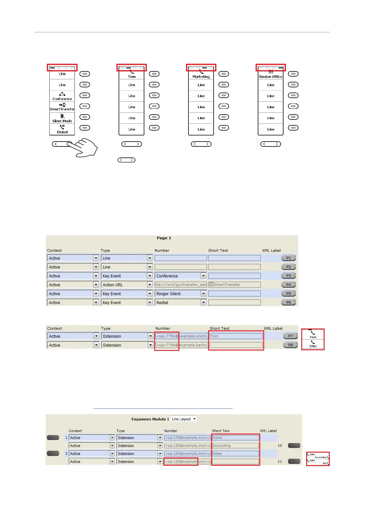 Fig. 3 - Labels on display with and without "Short Text" setting