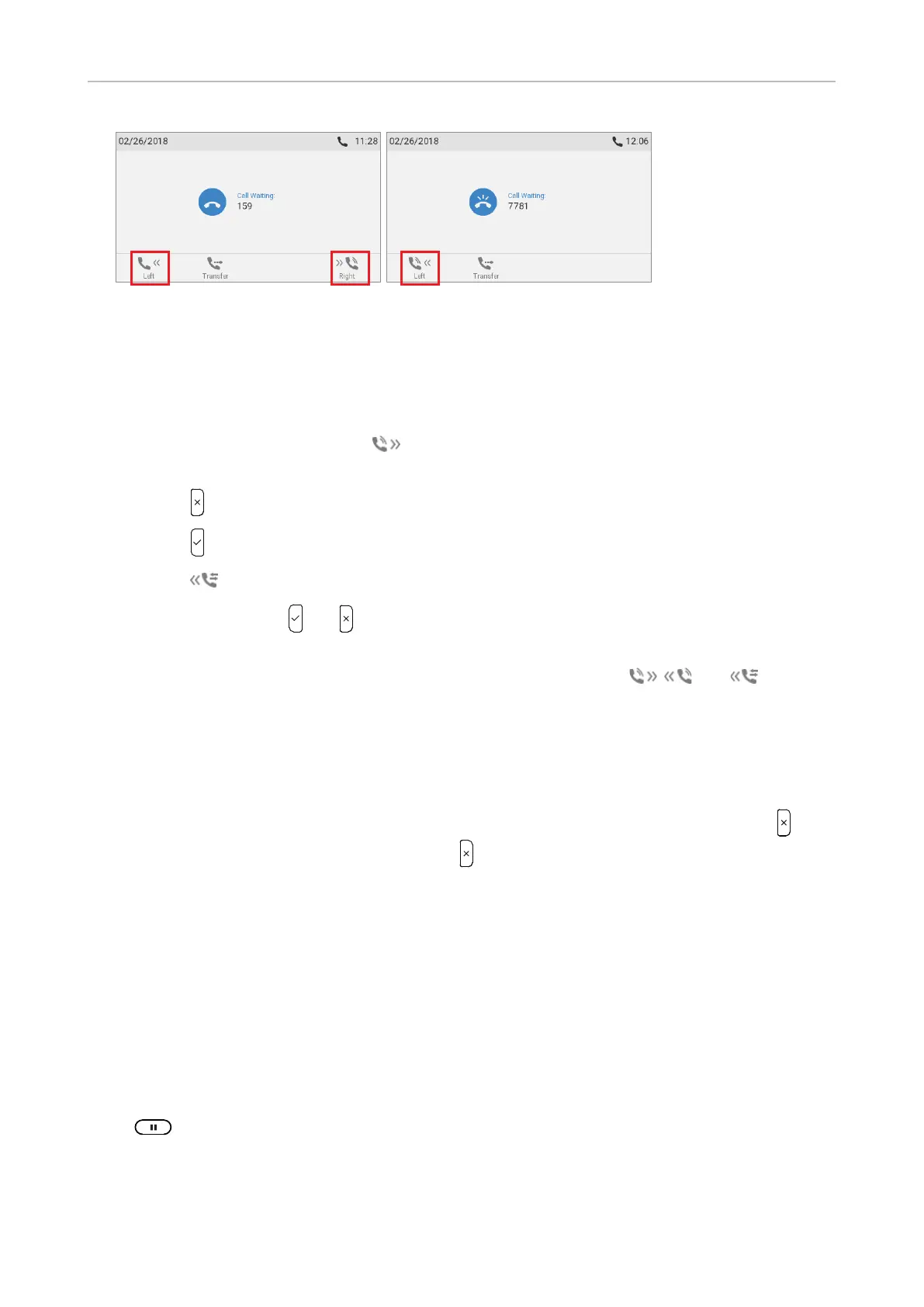 connection in Fig. 1 and 3, the call waiting in Fig. 2 and 5, or the call on hold in Fig. 4.
