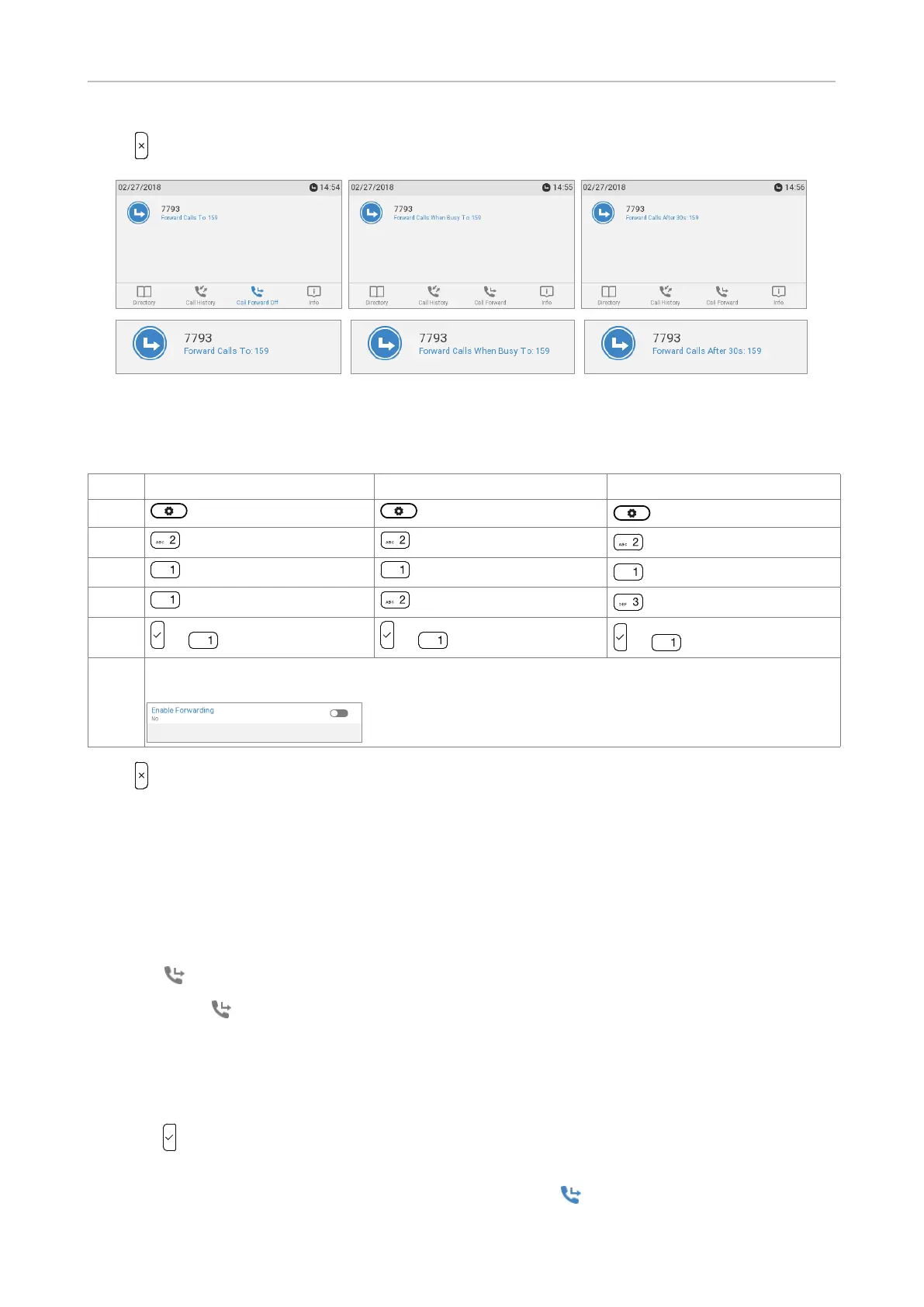 Forwarding all calls Forwarding calls when busy Forwarding calls after timeout