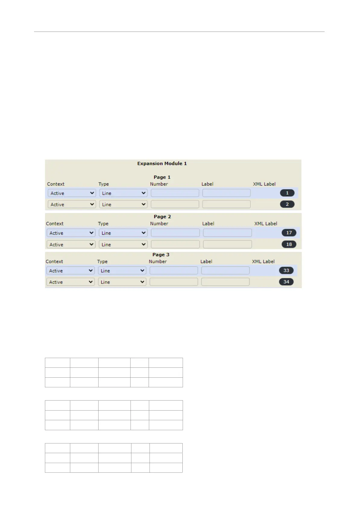 WUI: Web user interface (Function Keys page). The keys on the three pages of each module
