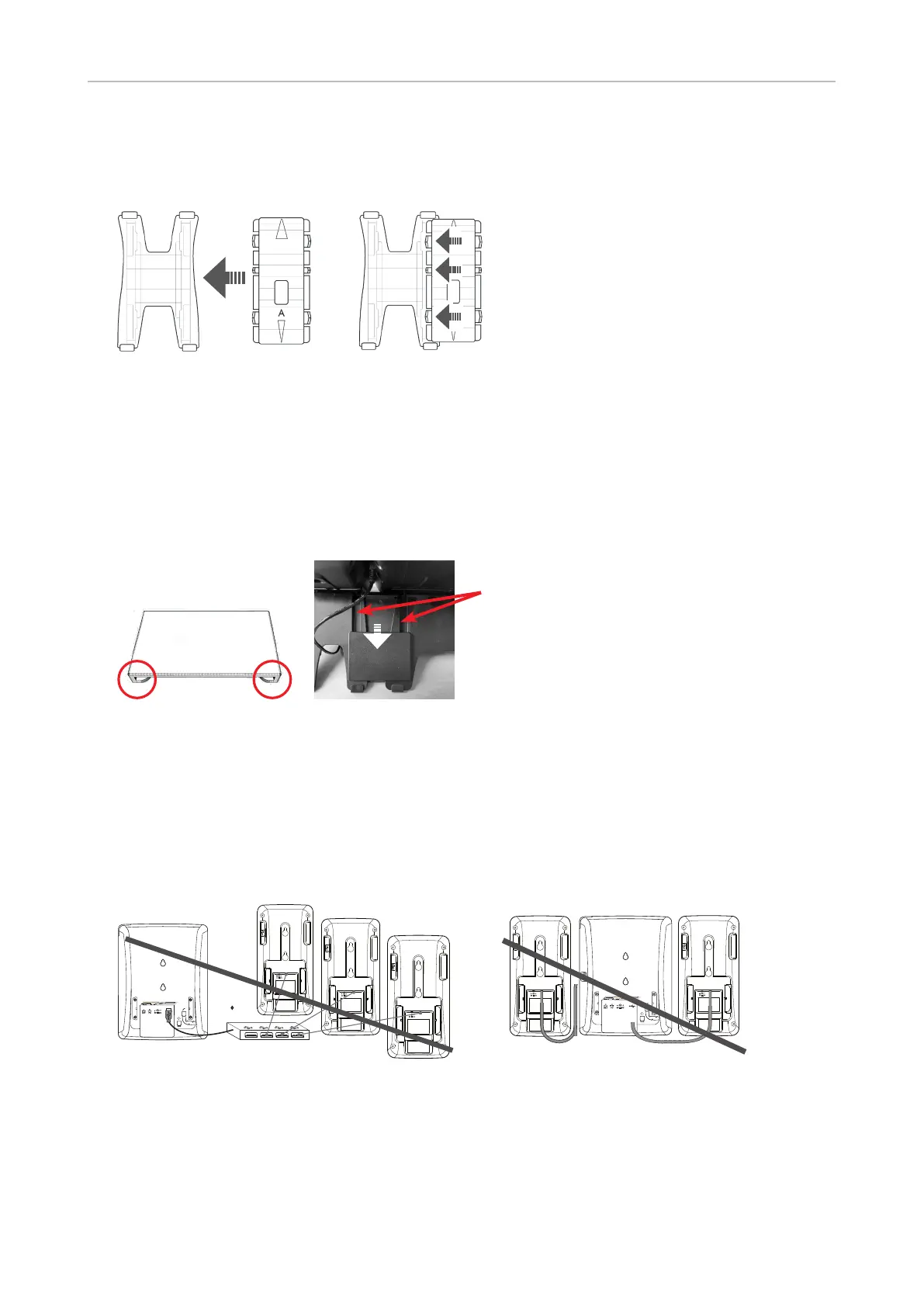 Insert the ridges into the slideguides of the footstands of phone and D7C and slide the connector