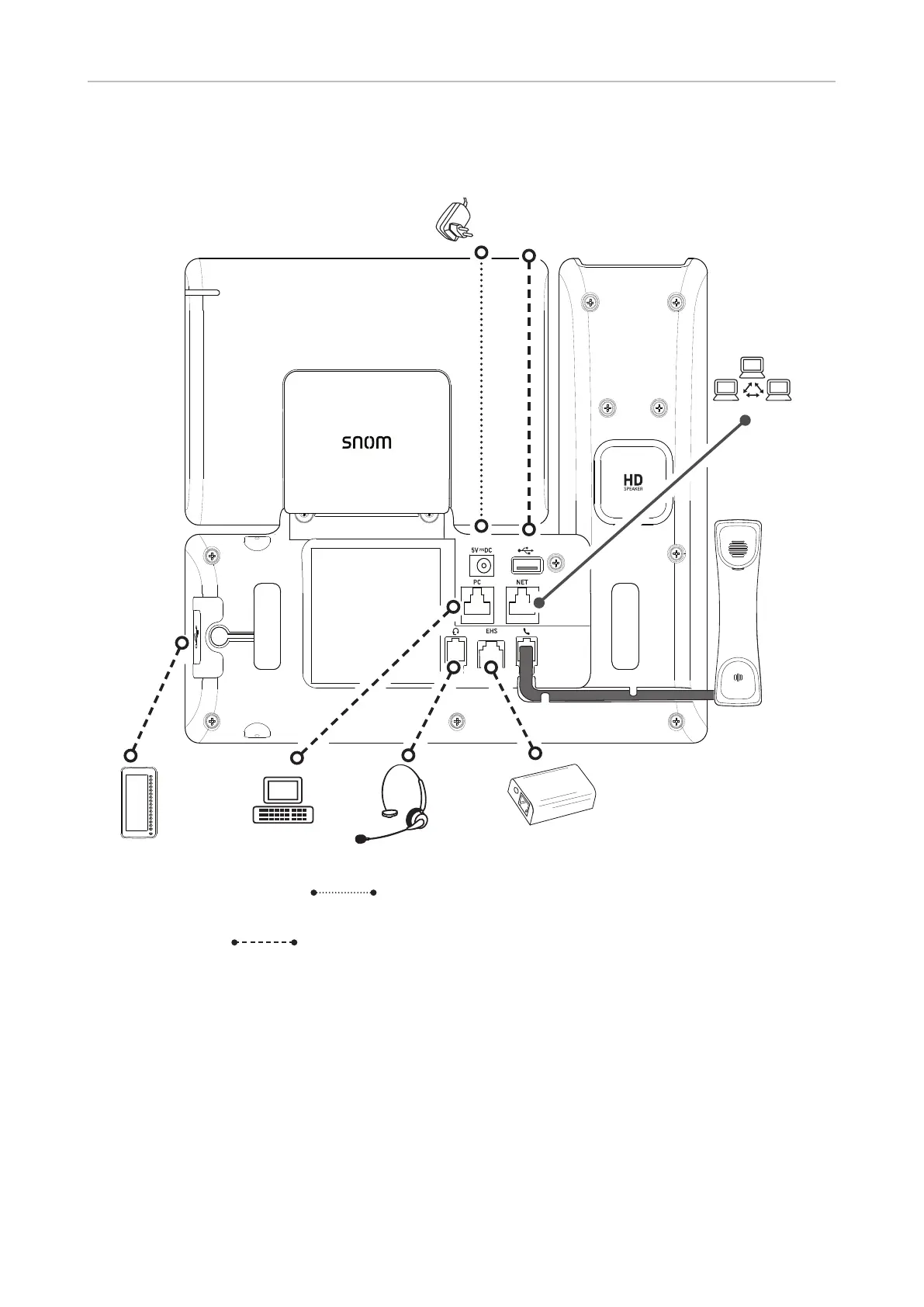 The phone can be operated with Power over Ethernet (PoE) provided via the network cable or, if