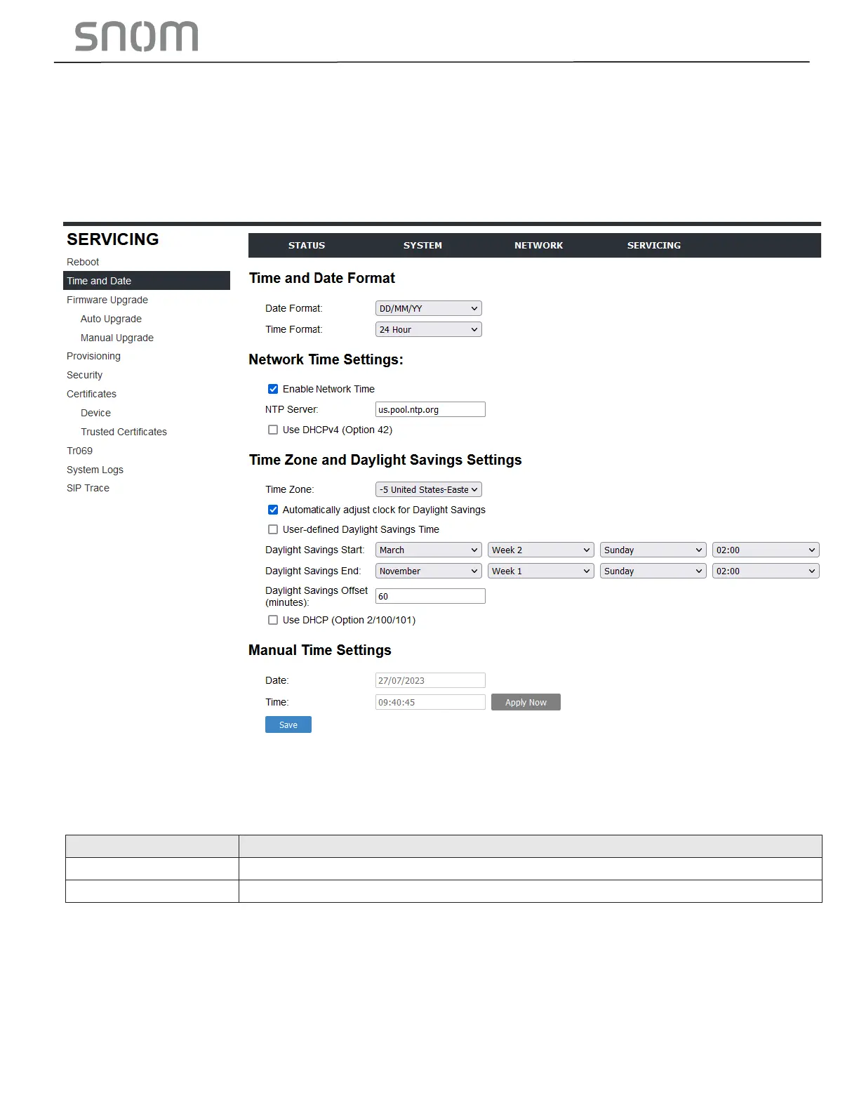 Click the link for each setting to see the matching configuration file parameter in Section 6.6.5 Time and