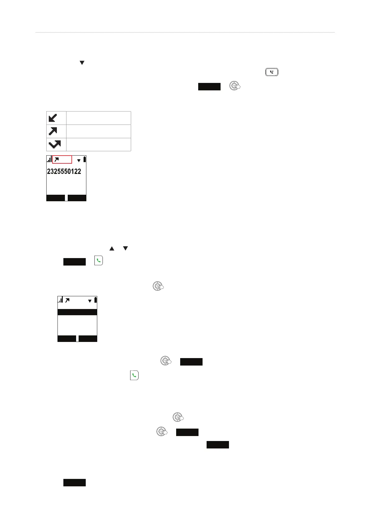 Note 1: When the phone is idle, you can access call history directly by pressing the down arrow