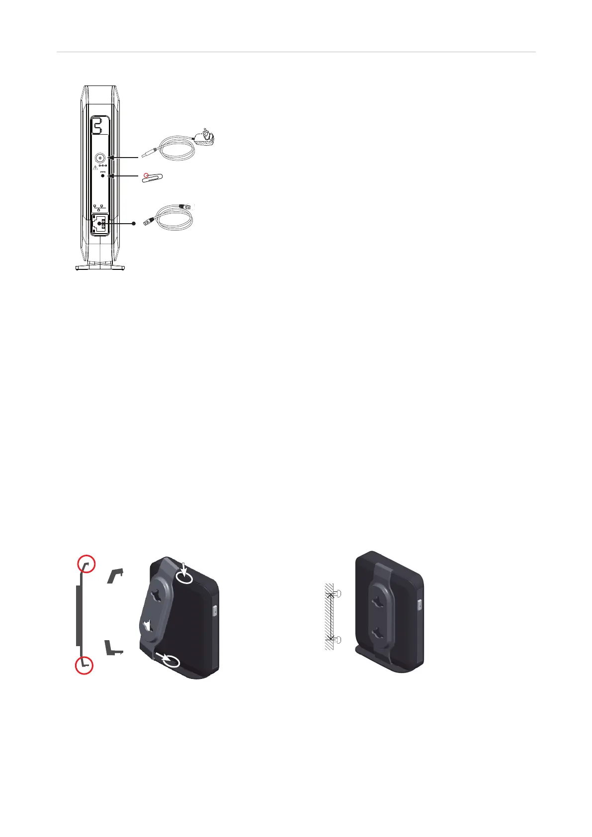 Prior to mounting the device on the wall, you must attach the wall bracket to the back of the base station. The