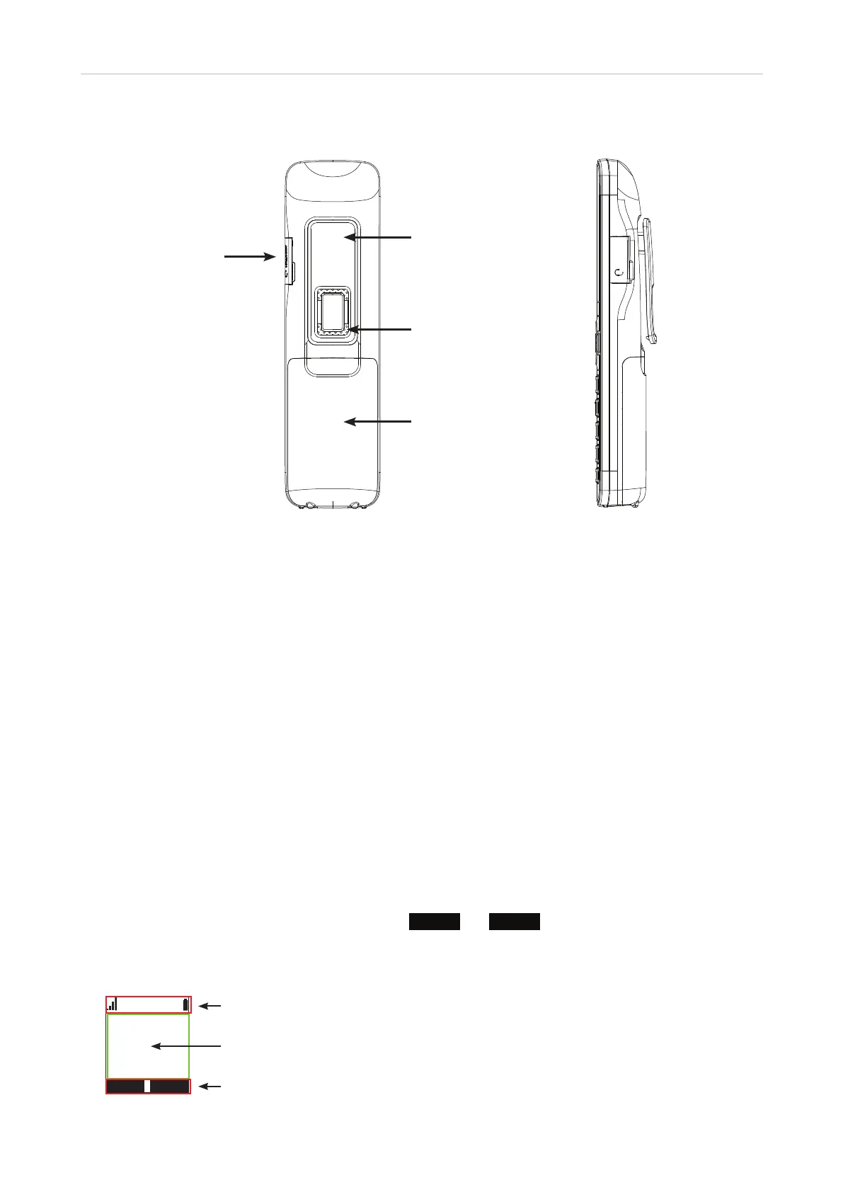 • Rear loudspeaker. The rear loudspeaker is located underneath the integrated belt clip.