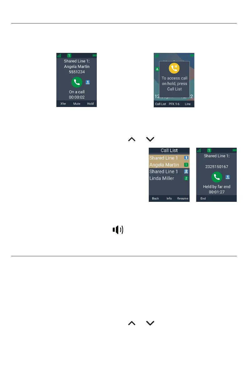 2� If you have multiple calls on hold, press or to select the call you want to