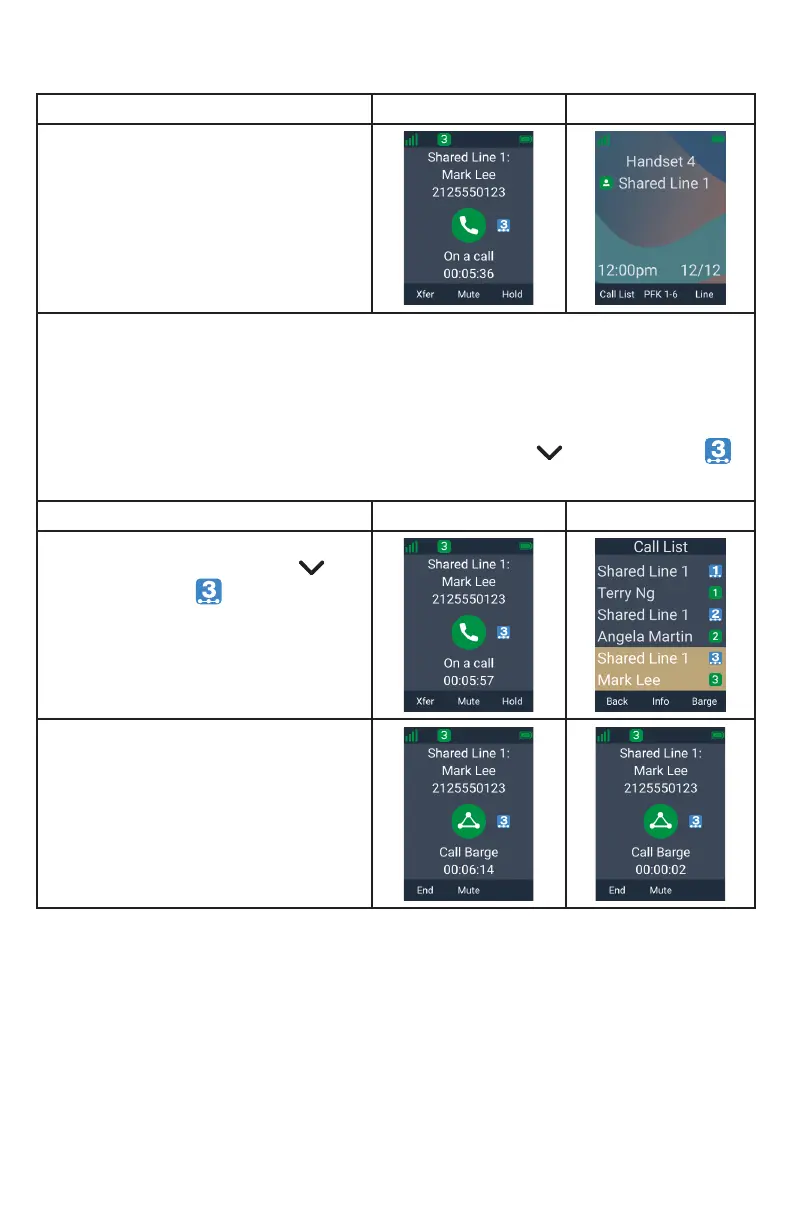 6� Alice presses Call List to display the Call List, presses to highlight call ,