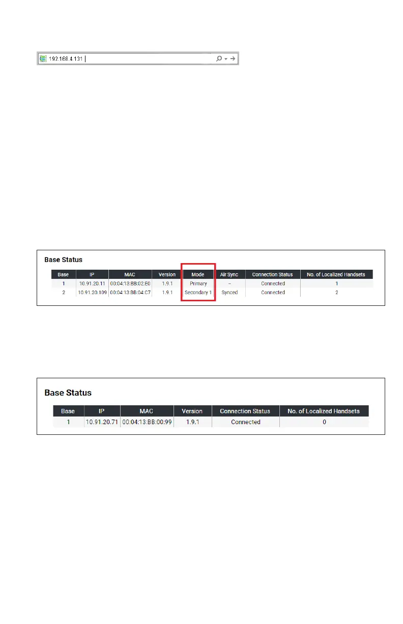 In the example below, the Primary base station’s IP address is 10�91�20�11 and the