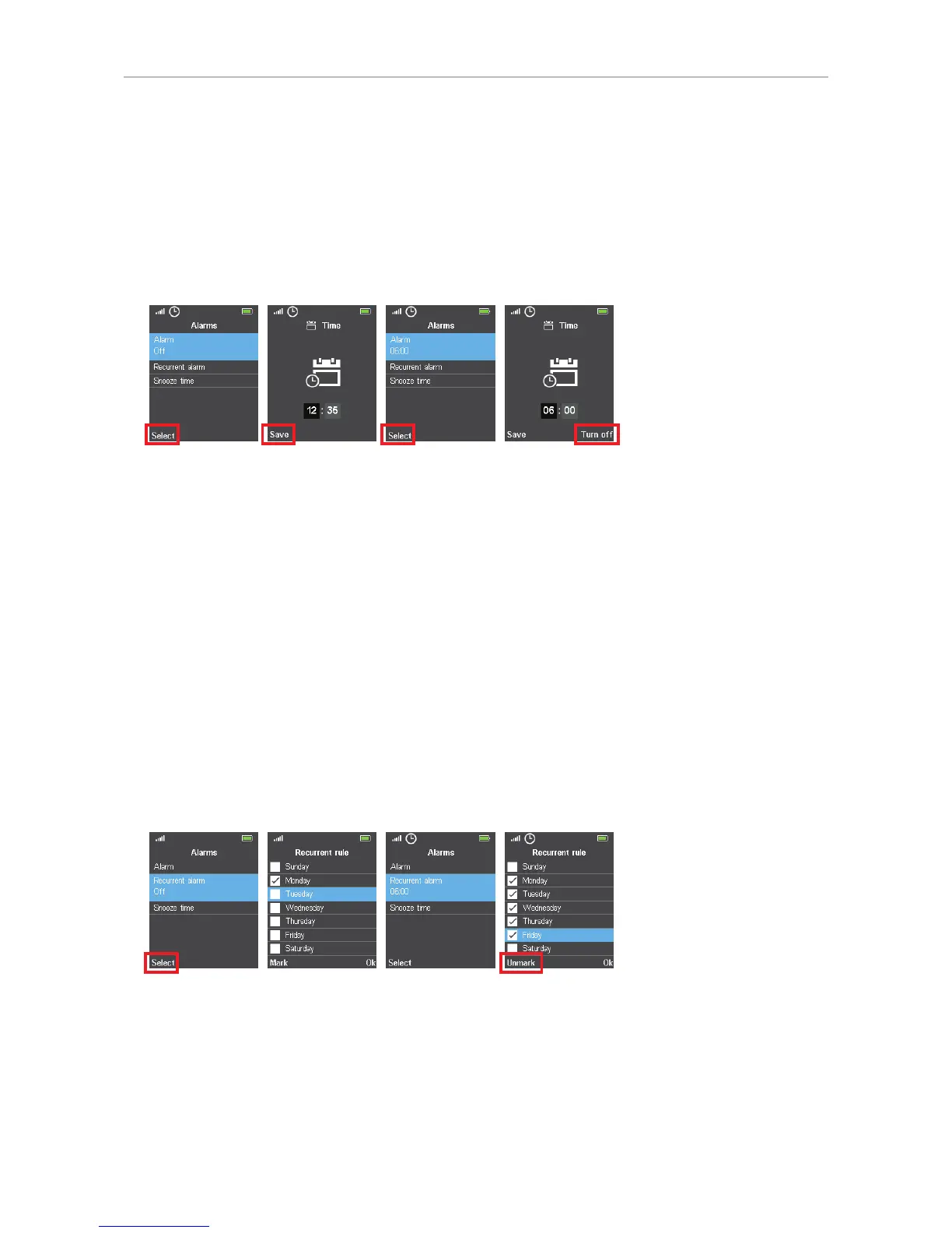 4. Scroll to each day of the week on which you want the alarm to go o and press the function key