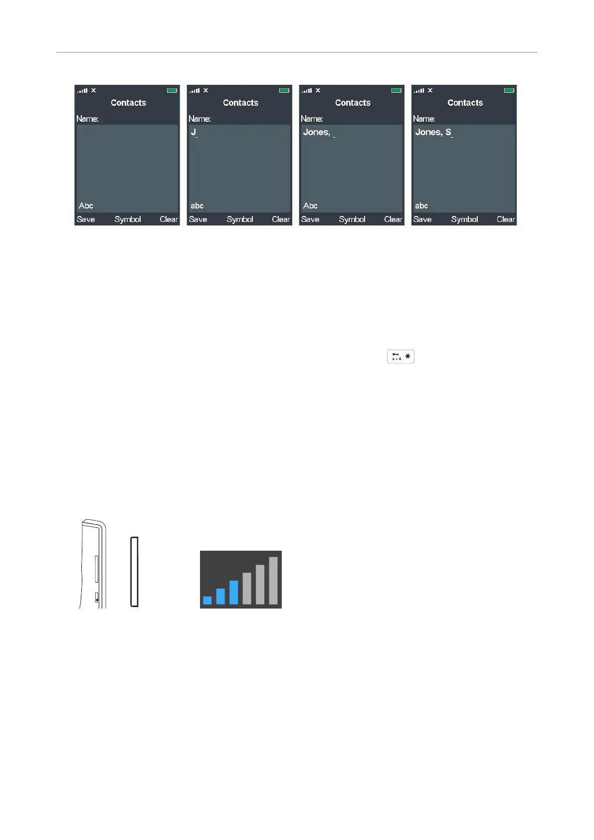 ◦ When you have typed the first letter (Fig. 6 and 8), letter mode will switch to lower-case