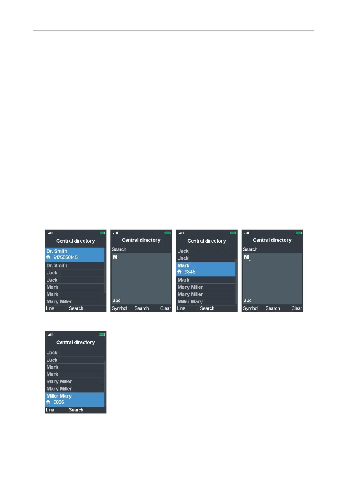 3. Press the function key underneath Search. The central directory menu appears with the first