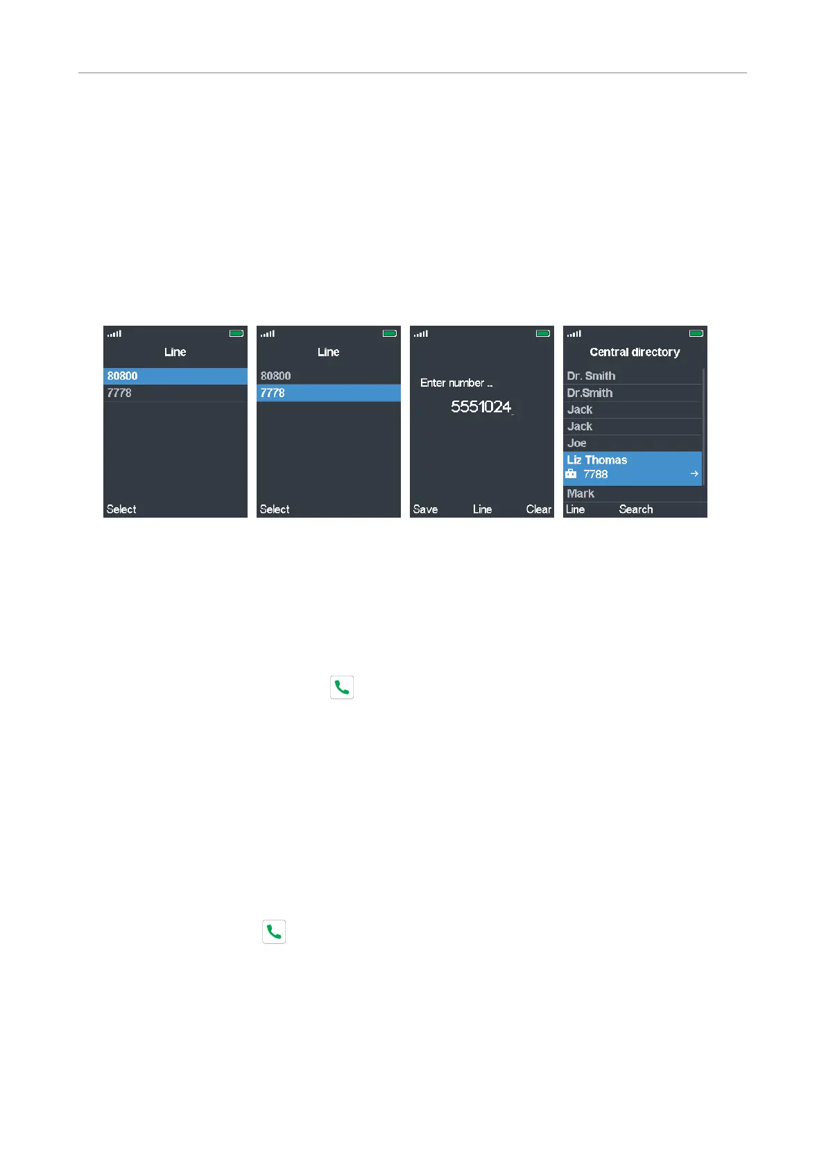 directory, the display will return to the directory page with the number you want to dial (Fig. 4).