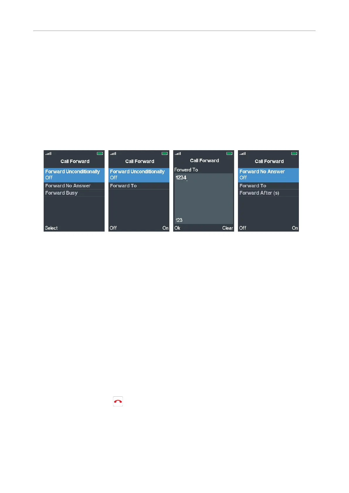 • Forward Unconditionally (Fig. 2): Forwarding all incoming calls to the number of the phone,