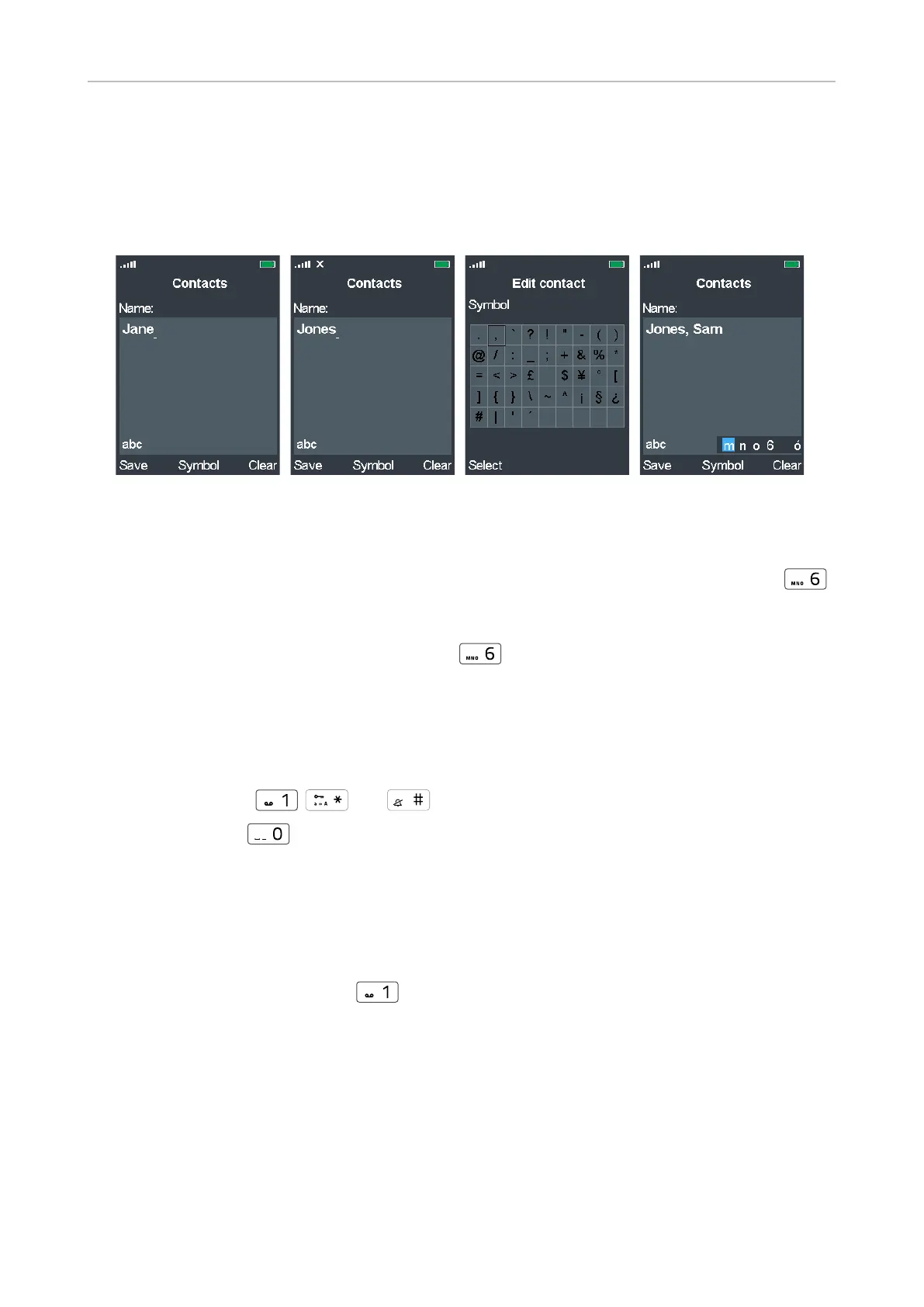 ◦ Press the keys , , and once to type the characters 1, *, or #, respectively.