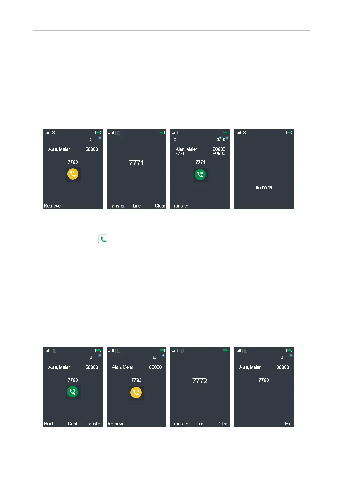 transfer) or without prior announcement (blind/unattended transfer). Ringing calls can be transferred