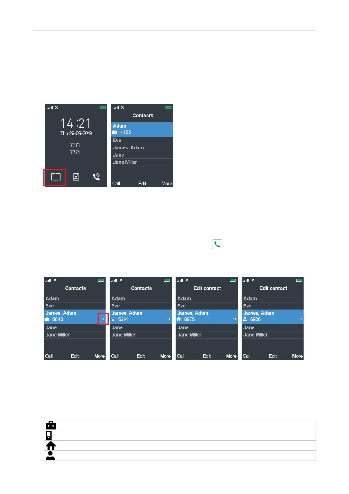 contact are possible: Work (Fig. 3), mobile (Fig. 4), home (Fig. 5), other (Fig. 6). If there is more