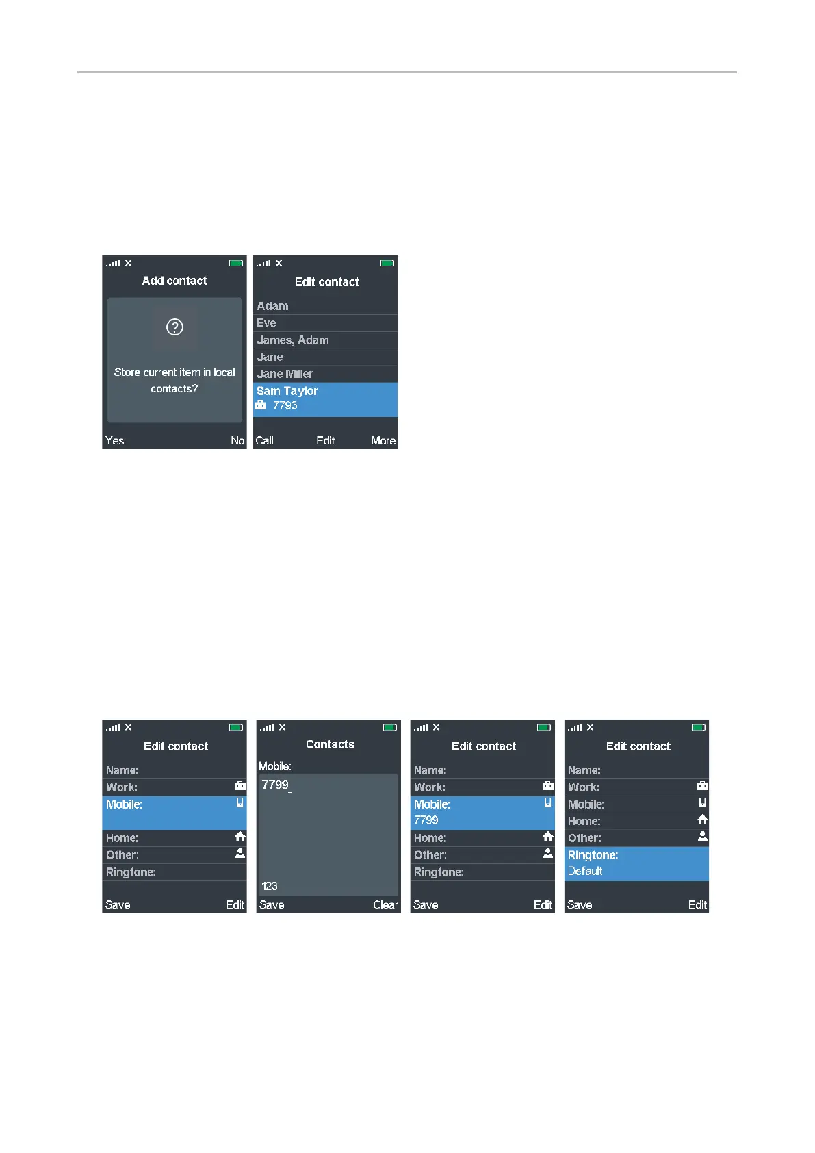 5. Enter the number and press Save. The Edit contact menu appears (Fig. 18).
