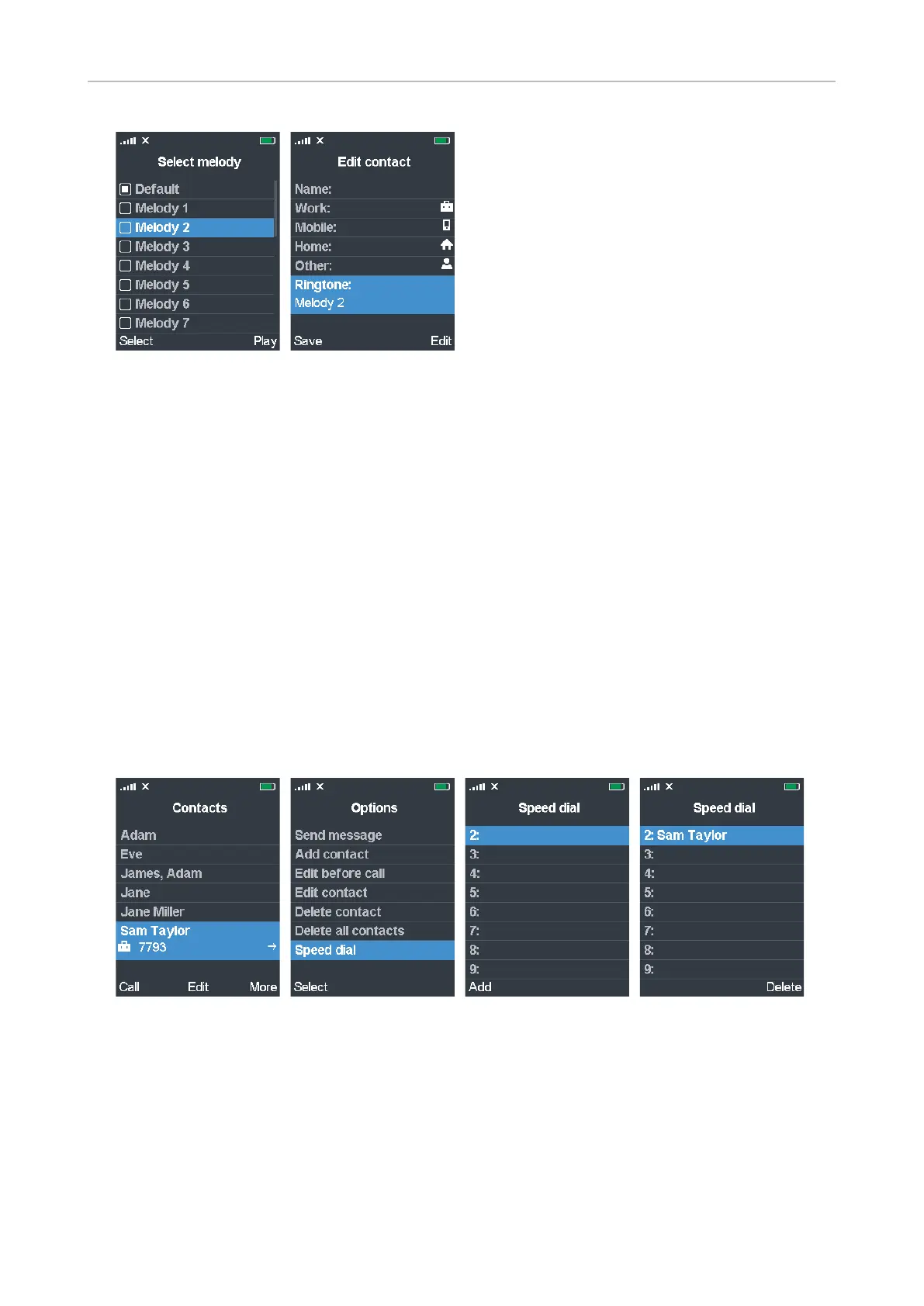 ◦ Press Save to save the highlighted melody. The Edit contact screen appears (Fig. 21).