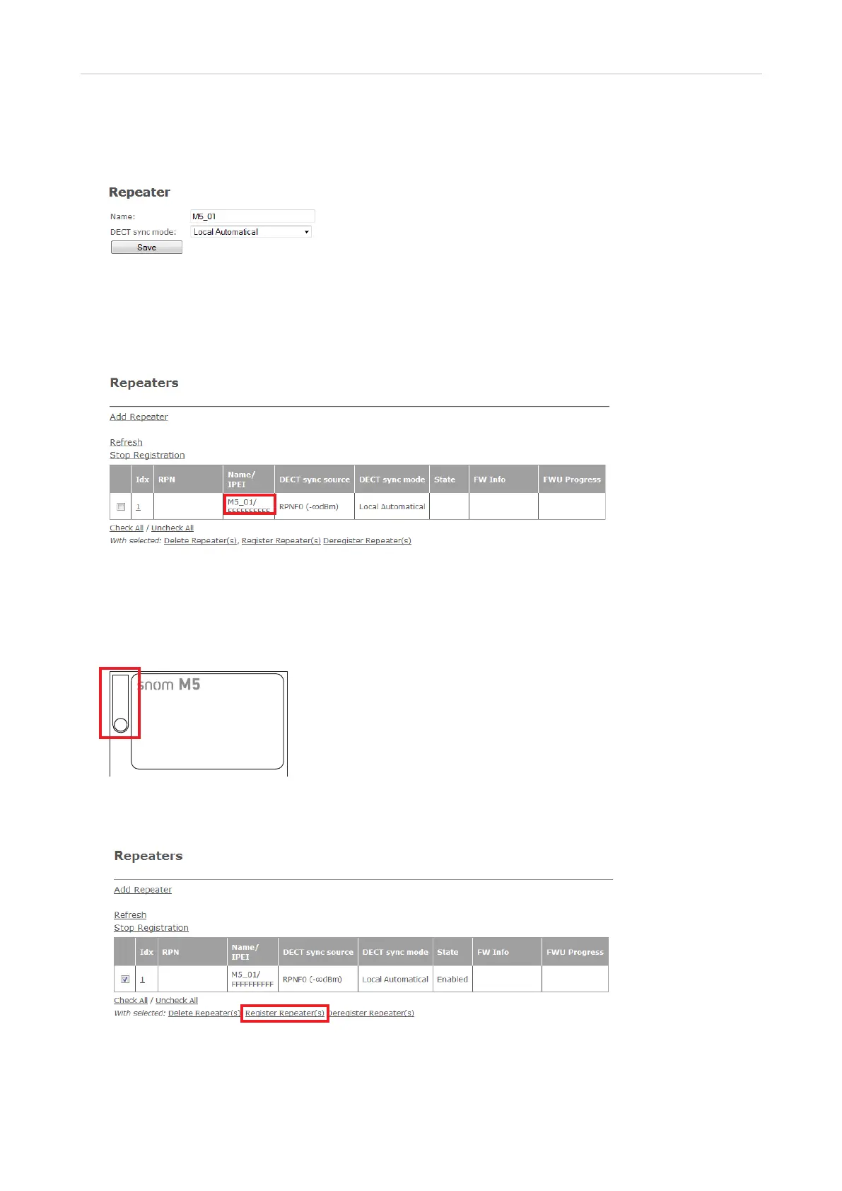 8. On the Repeater page, check the box to the left of the Idx and then click on Register Repeater(s).