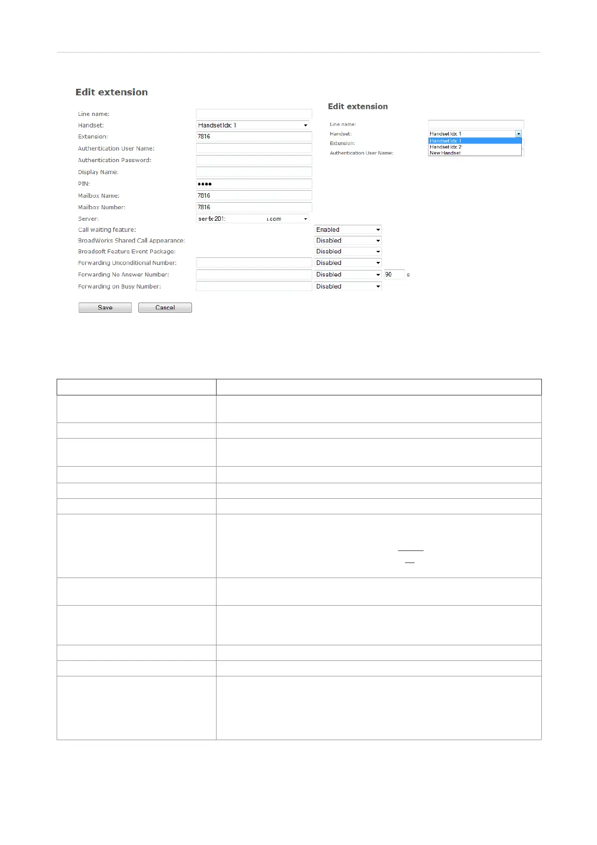 Extension Extension number or SIP username, as configured in PBX or on SIP