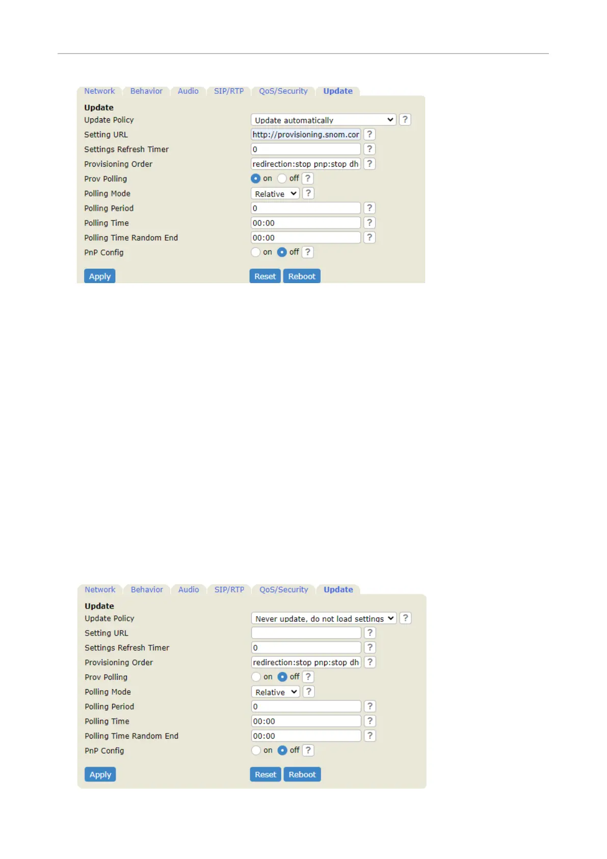 If the current setting is updating through provisioning, whether automatically or semi-automatically,