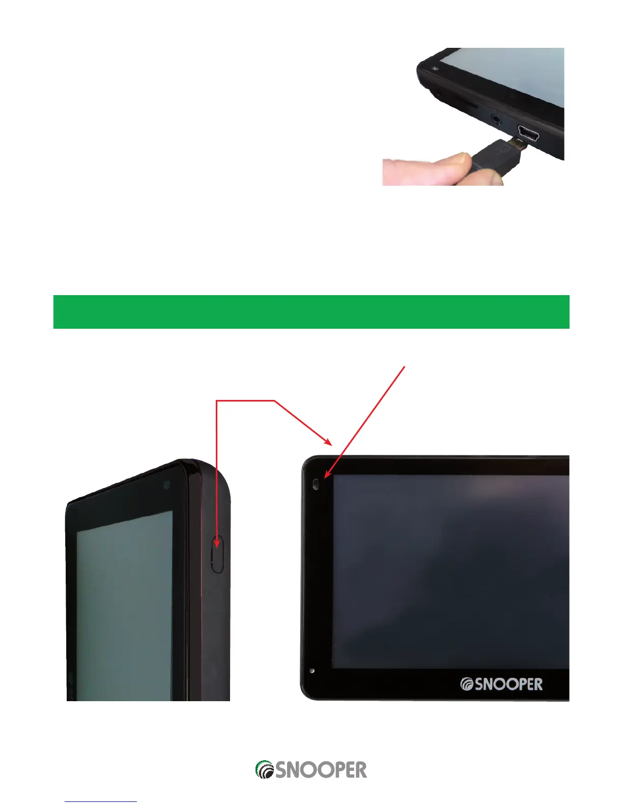 Note: the battery is designed to be a back up and Snooper recommends that the the navigation device is powered from the