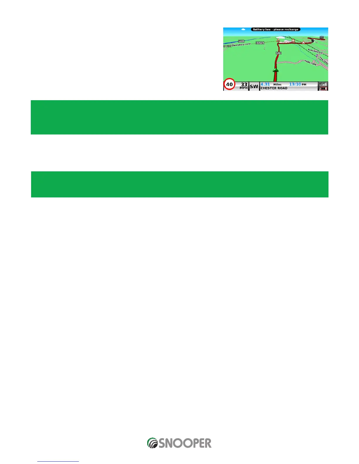 If Snooper is powered from the internal battery and the ‘Battery Low – Please