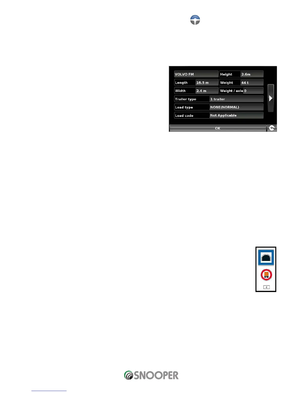 height, weight and width. It is possible to save the settings of 10 different trucks. Follow these instructions to enter your vehicles